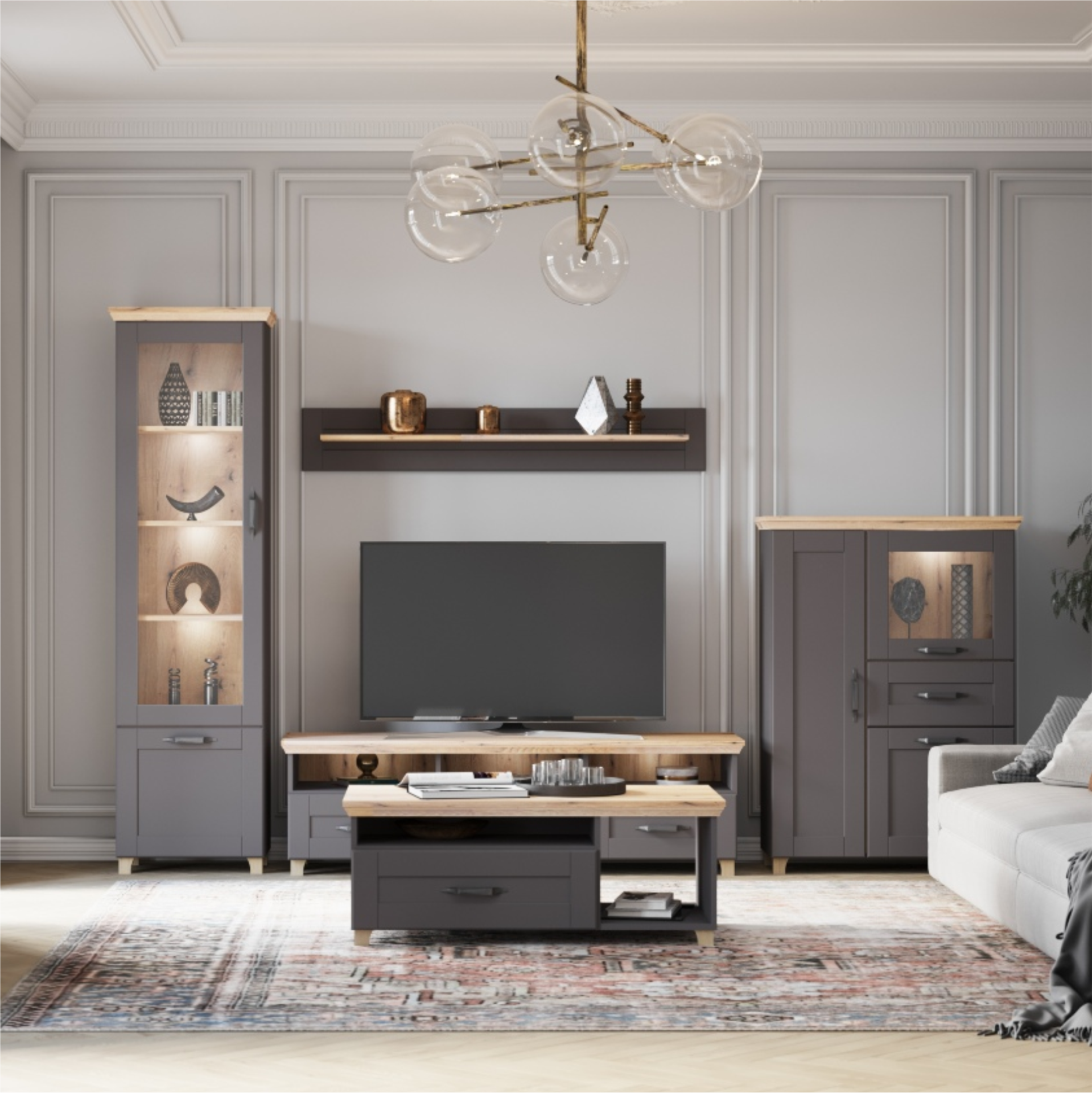 Dnevna soba Contempo niska staklena vitrina (artisan - sivo)