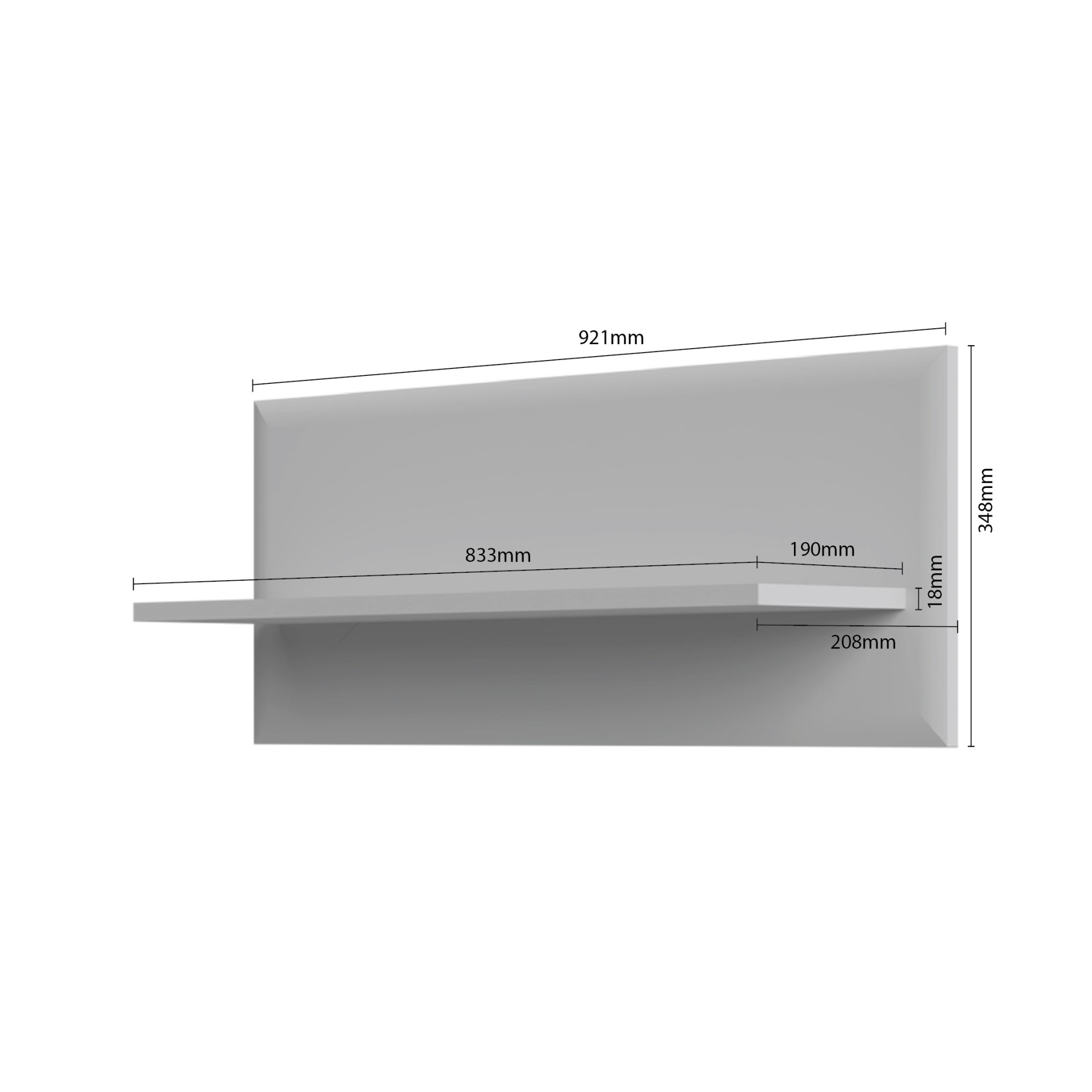 Viseća polica za dnevni boravak iz kolekcije Gala širine 92 cm. Stražnja strana police je od profiliranog medijapana u dekoru pacifik orah s policom lakiranom UV lakom u toploj bež boji. Element je opremljen okovom za vješanje na zid.