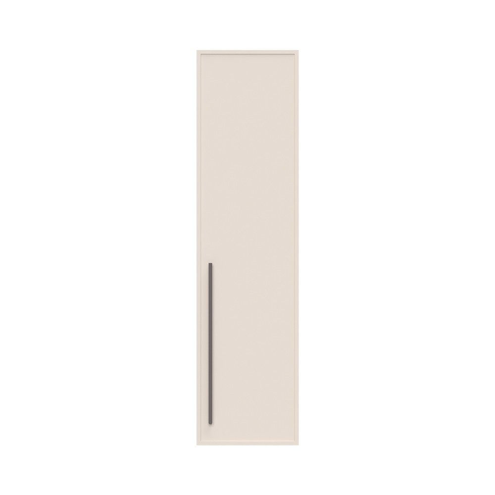 Viseća komoda iz kolekcije Opera. Korpus i prednja strana lakirani soft mat UV lakom u boji kašmira. Unutrašnjost u textil dekoru fronta s ukrasnim profiliranim MDF okvirom. Soft-close šarke, pod i strop debljine 25 mm. Ručke u boji cortado braon mat. Montira se samostalno ili s drugim visećim elementima.