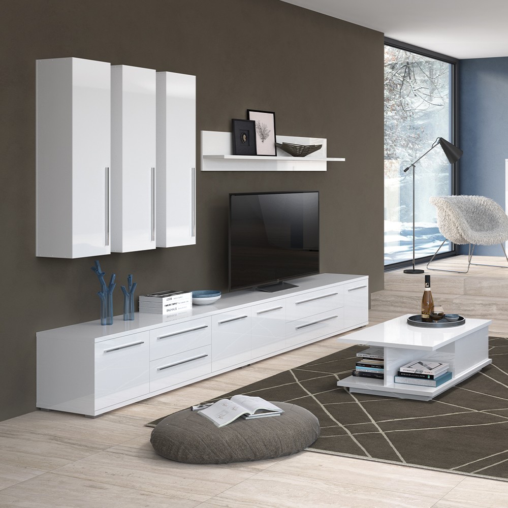 TV komoda za dnevni boravak iz kolekcije namještaja Piano sa dva krila i dvije ladice, kompletno lakirana najnovijom tehnologijom UV lakiranja. Fronte, stranice i strop elementa lakirani su UV lakom visokog sjaja, u toploj bež ili kristalno bijeloj boji. Unutarnji dijelovi korpusa su u bijeloj boji. Soft-close šarke i klizači omogućuju tiho zatvaranje krila i ladica, što pruža dodatnu udobnost tijekom stalne uporabe. Moderna, elegantna i funkcionalna TV komoda za dnevni boravak.