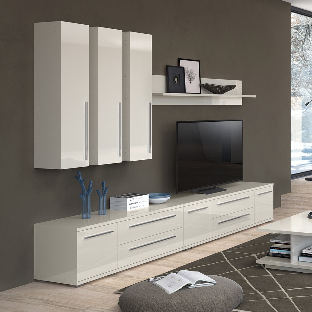Viseća komoda iz kolekcije namještaja Piano, jednokrilna, kompletno lakirana UV lakom. Fronta i kompletno tijelo elementa lakirani su UV lakom visokog sjaja, u toploj bež ili kristalno bijeloj boji. Unutarnji dijelovi korpusa su u bijeloj boji. Soft-close šarke omogućuju tiho zatvaranje krila što pruža dodatnu udobnost tijekom stalne uporabe. Zbog dvije unutarnje police koji su dio standardne opreme vrlo je praktična.