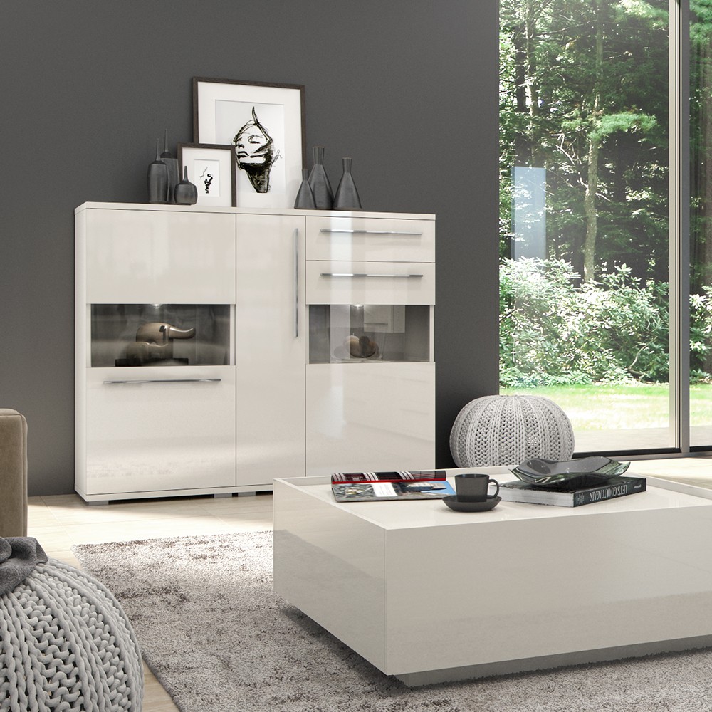 Vitrina je dostupna u dekoru bijela lak ili bež lak.