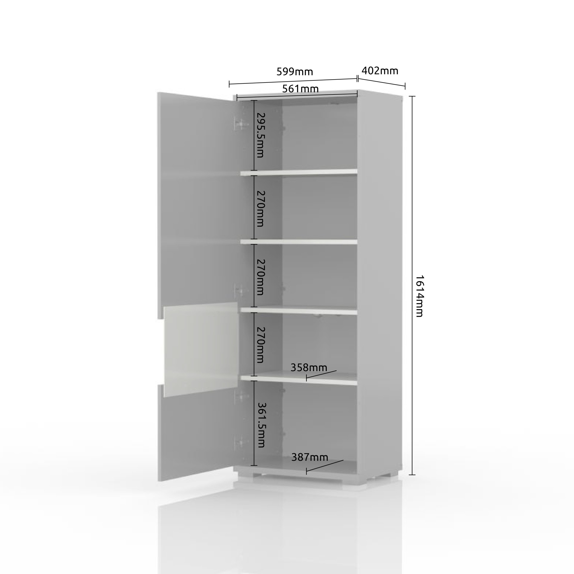 Dimenzije vitrine su 60x161x40 cm (ŠxVxD).