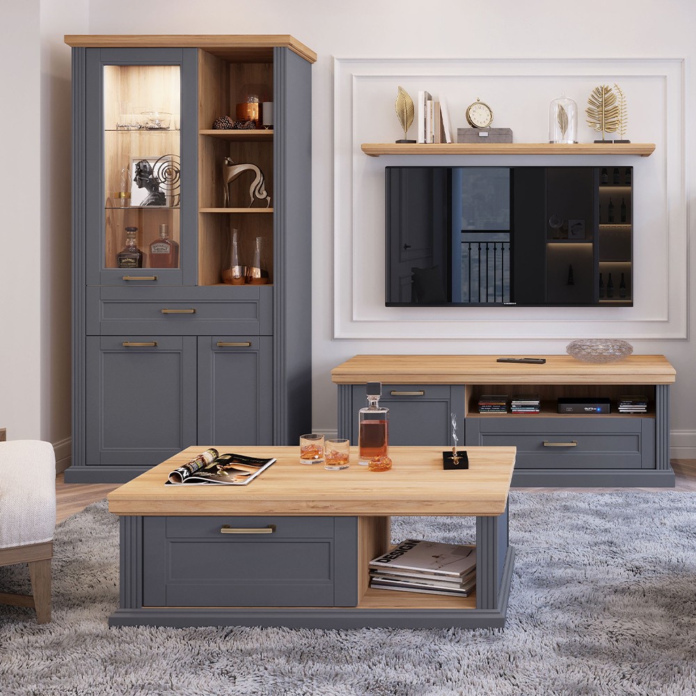 Dnevna soba Tara vitrina TARA-V3K1F (grafit)