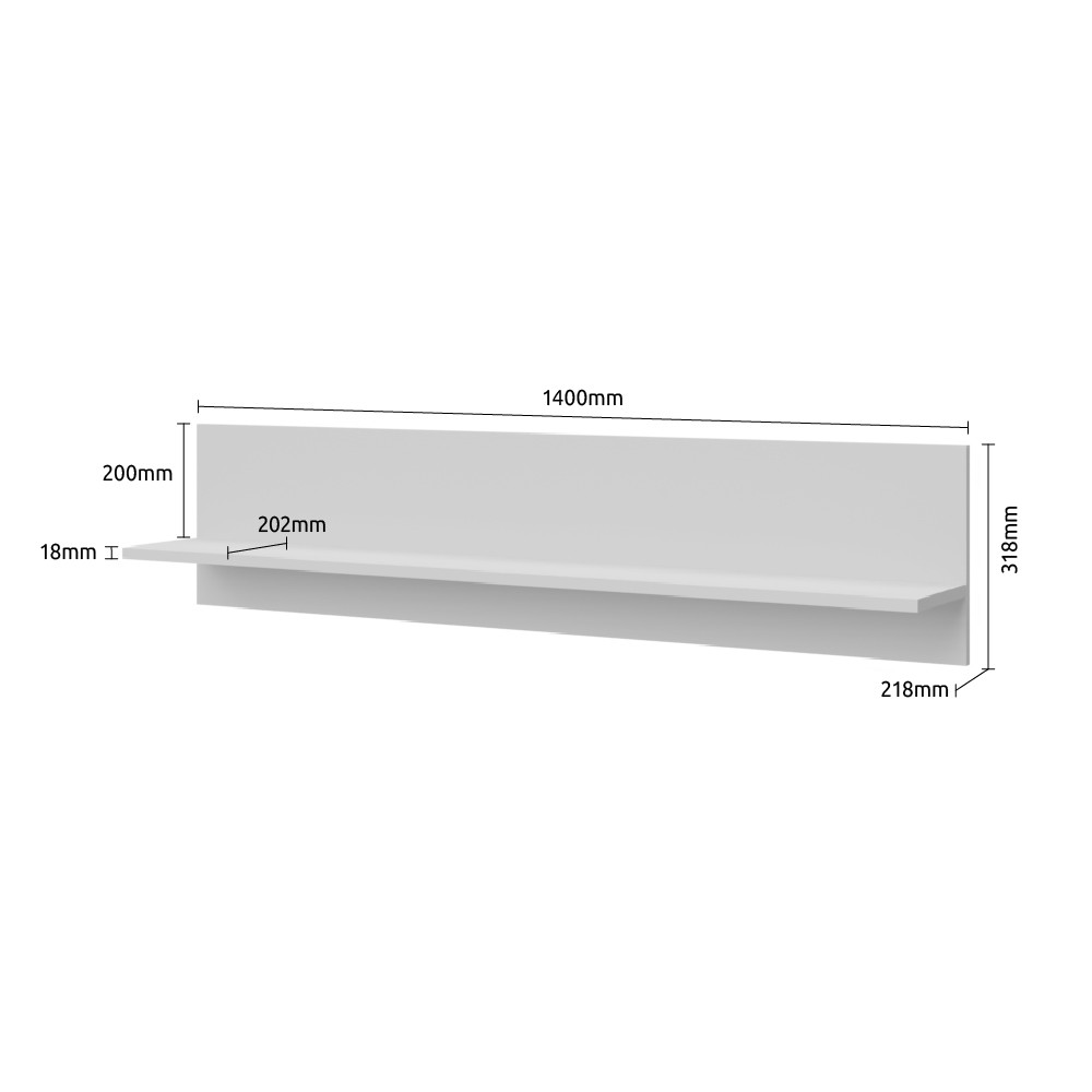 Dimenzije police su 140x32x22 cm (ŠxVxD).