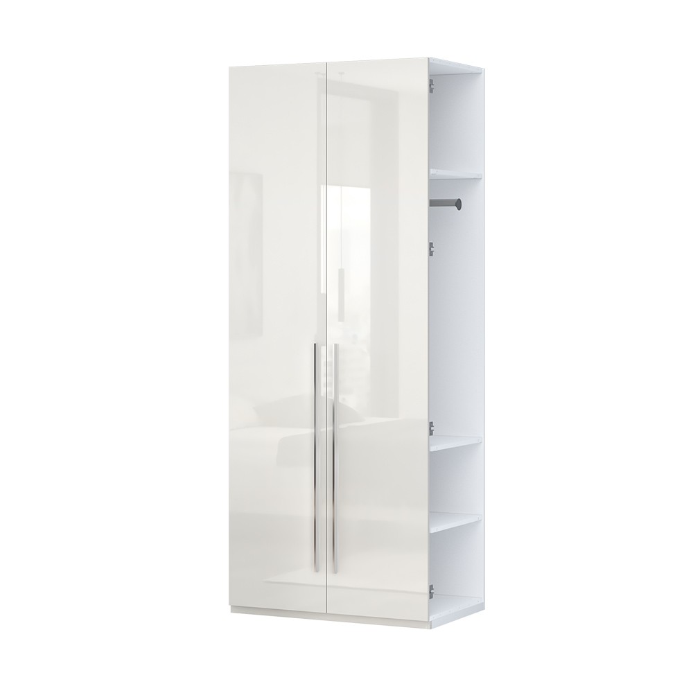 Dodatni dvokrilni ormar iz kolekcije namještaja Piano. Uz ovaj ormar odabranu kompoziciju garderobe možete proširiti za dvije širine krila. Fronte ormara su lakirane UV lakom visokog sjaja u toploj bež ili kristalno bijeloj boji. Unutarnji dijelovi korpusa su u bijeloj boji. Soft-close šarke omogućuju tiho zatvaranje krila što daje dodatnu pogodnost pri kontinuiranoj uporabi. Naglasite estetski izgled ormara bočnim i stropnim letvicama, u istoj boji i sjaju, debljine 25 mm. Dodatnom opremom možete kreirati unutrašnjost ormara prema svojim potrebama. Spoj lijepog i jednostavnog u ormaru u kojem su sve stvari uredno posložene.