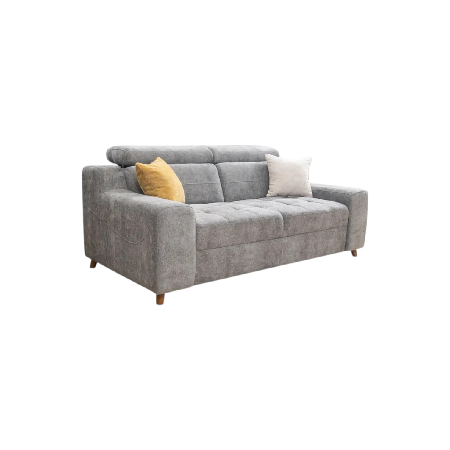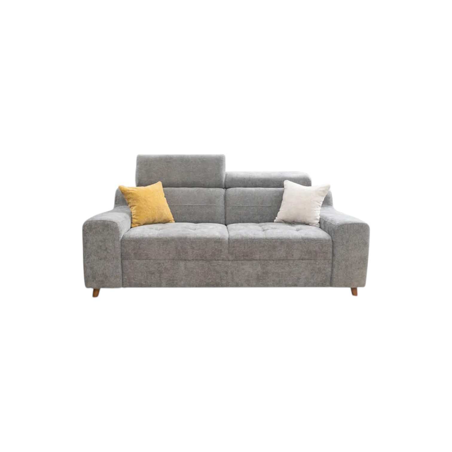 Dvosjed modernog, elegantnog dizajna. Postoji mogućnost kombiniranja boja, dezena. Vrlo udoban, veliki izbor materijala. Drvena konstrukcija daje snagu i izdržljivost. Visina garniture s podignutim naslonom za glavu je 105 cm. Jastuci uključeni u cijenu.