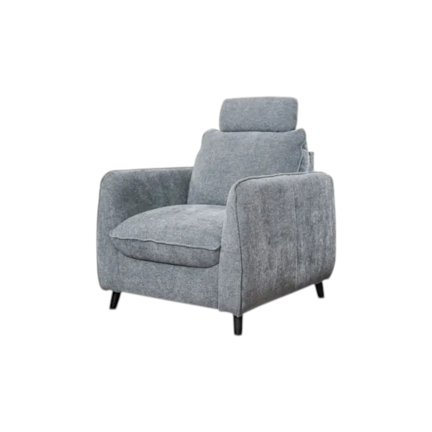 Fotelja modernog dizajna, s kromiranim metalnim nogama. Vrlo udobna, sjedeći dio je od spužve (gustoće 30) koji se nalazi na elastičnim trakama koje povećavaju osjećaj udobnosti. Veliki izbor materijala. Drvena konstrukcija daje snagu i izdržljivost, a metalne noge stabilnost.