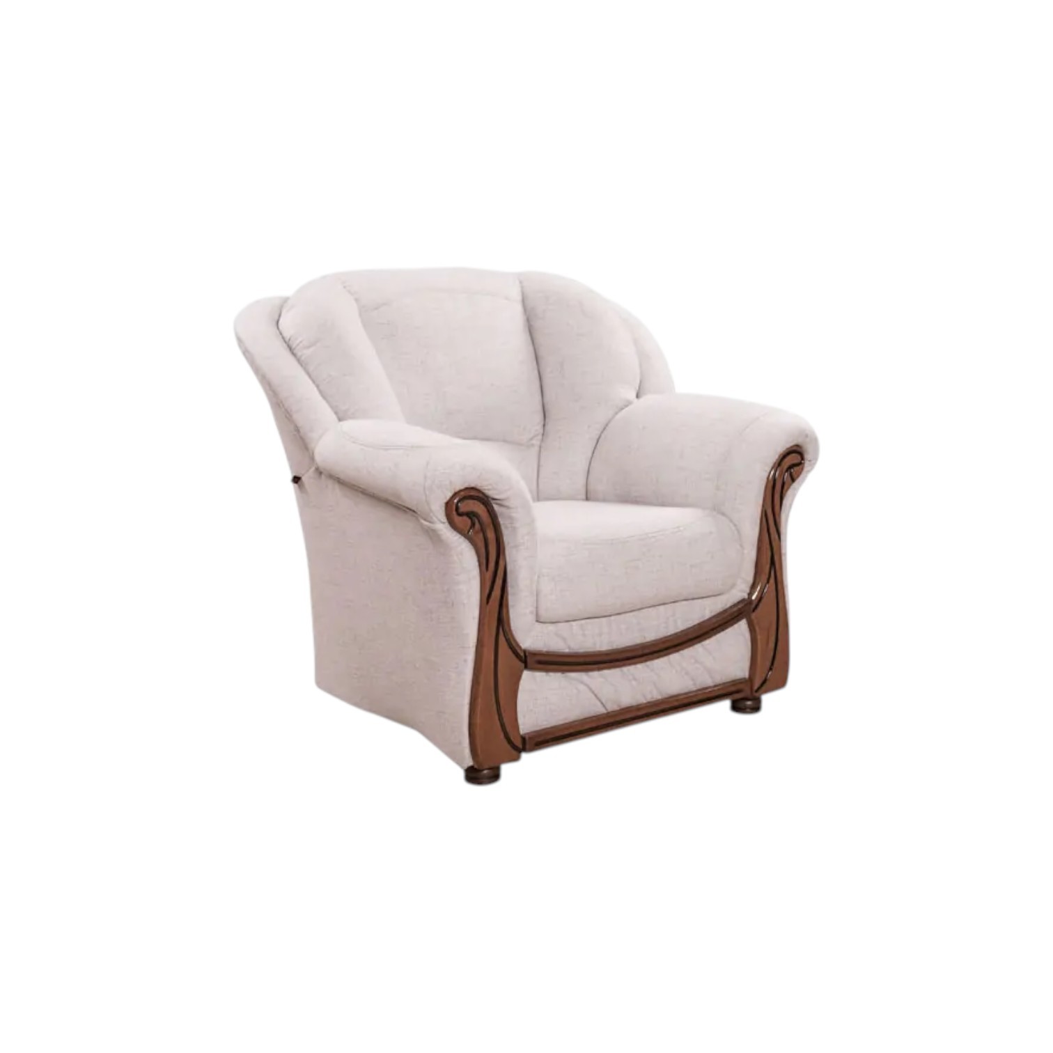 Fotelja modernog dizajna, s drvenim nogama. Vrlo udobna, sjedeći dio je od spužve (gustoće 30) koji se nalazi na elastičnim trakama koje povećavaju osjećaj udobnosti. Veliki izbor materijala. Drvena konstrukcija daje snagu i izdržljivost. Drvene aplikacije uvijek u smeđoj boji.