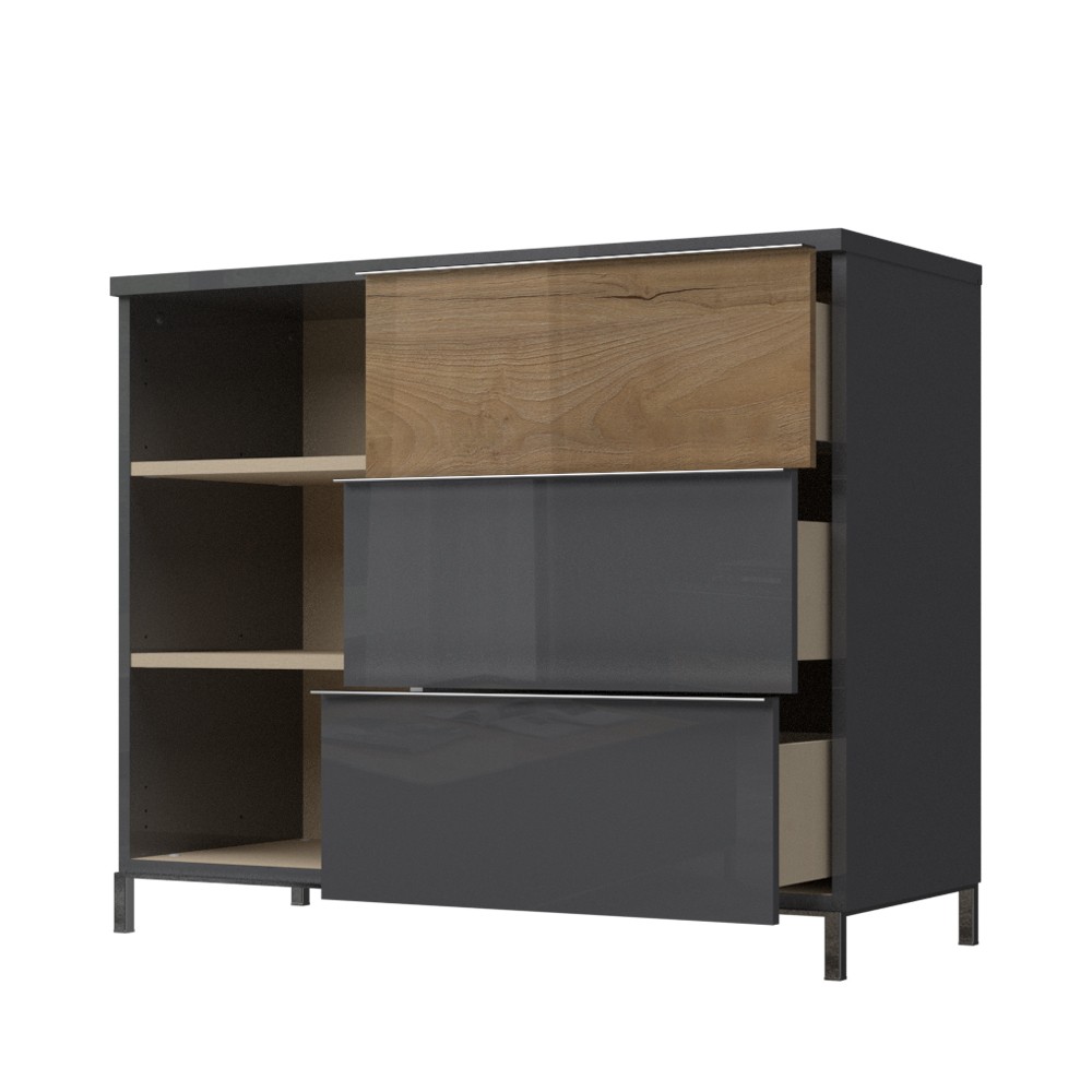 Komoda je dostupna u dekoru antracit HG lak/pacifik orah lak.