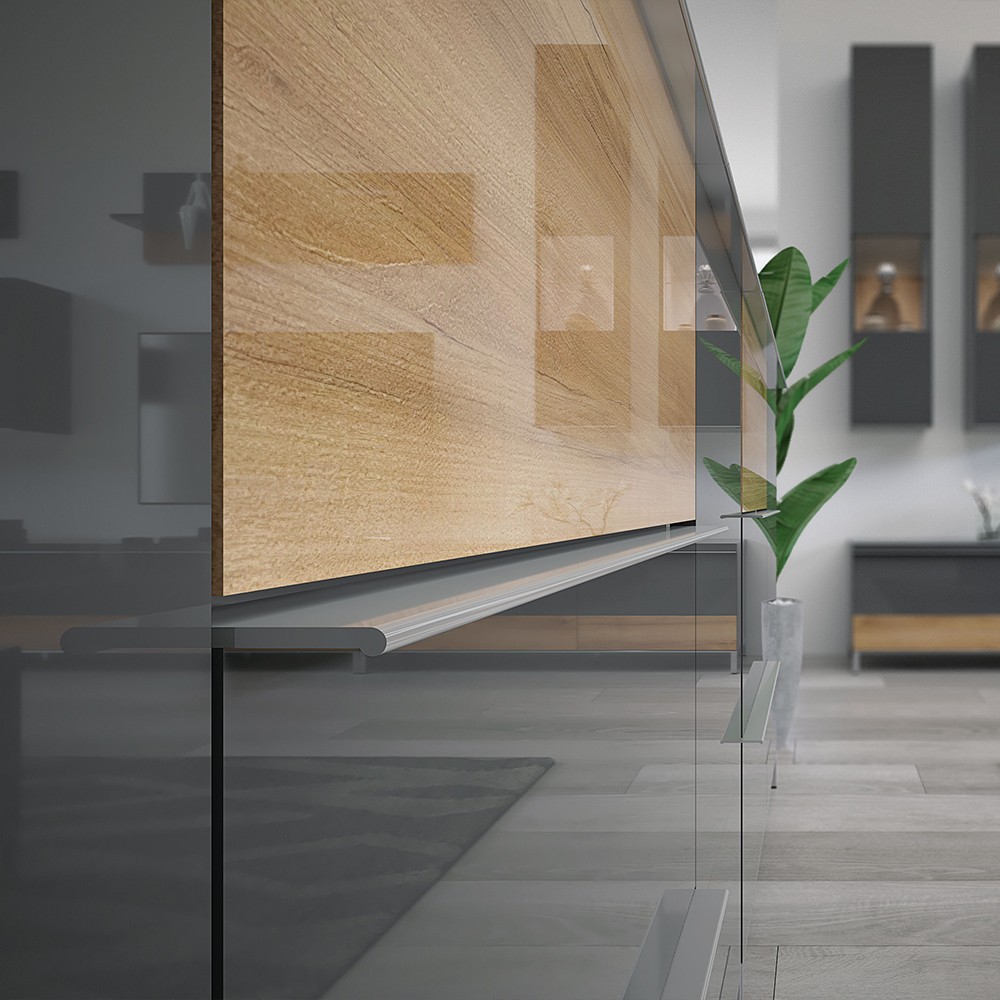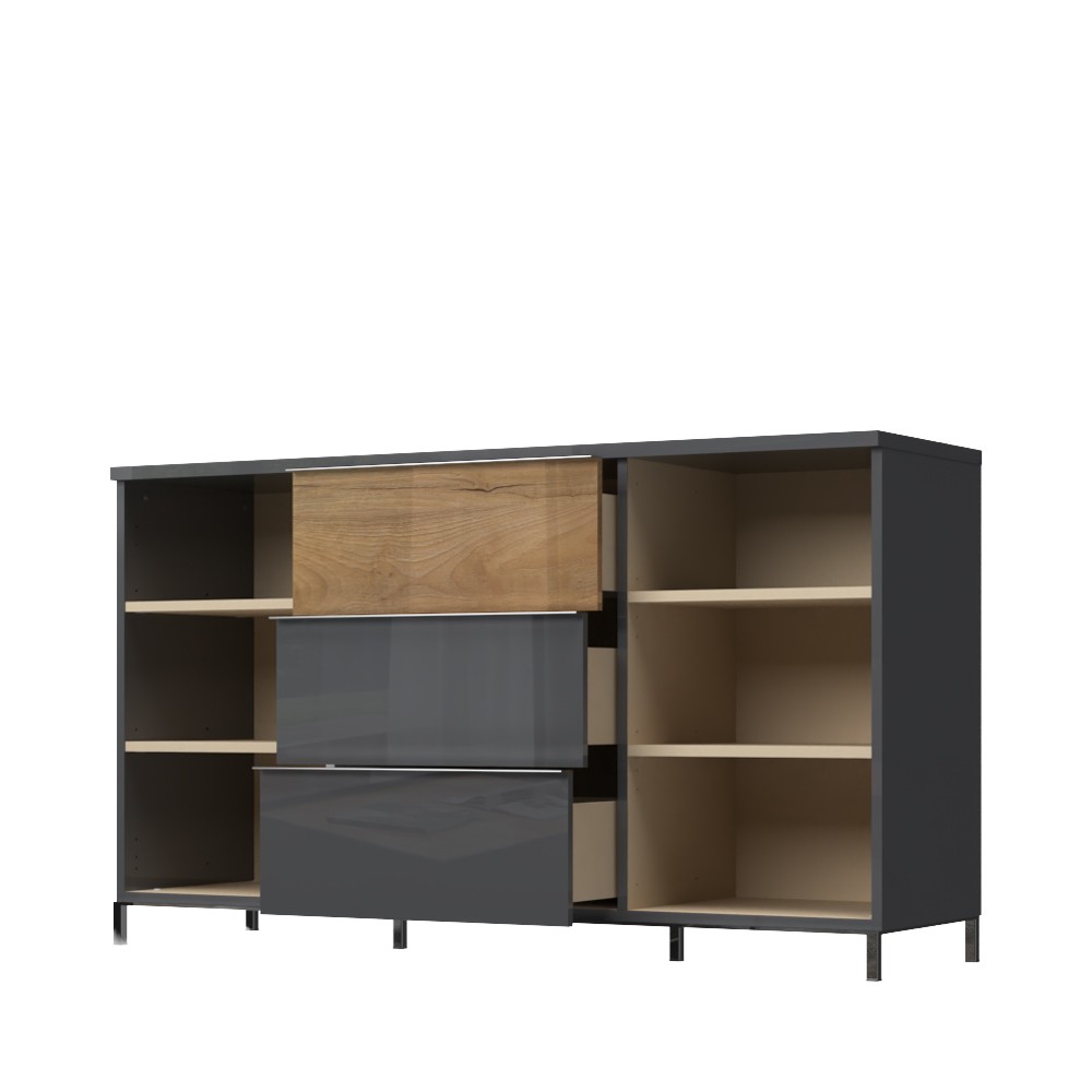 Komoda je dostupna u dekoru antracit HG lak/pacifik orah lak.