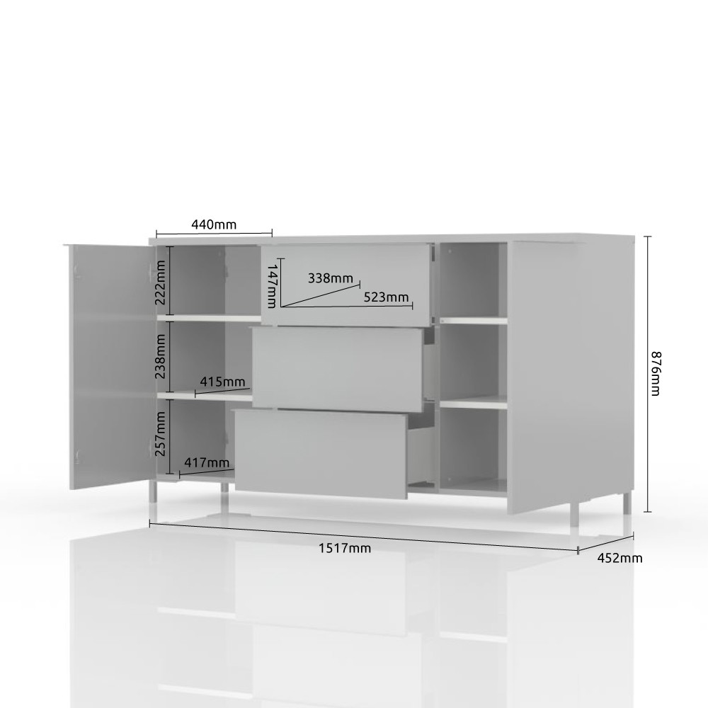Dimenzije komode su 152x88x45 cm (ŠxVxD).