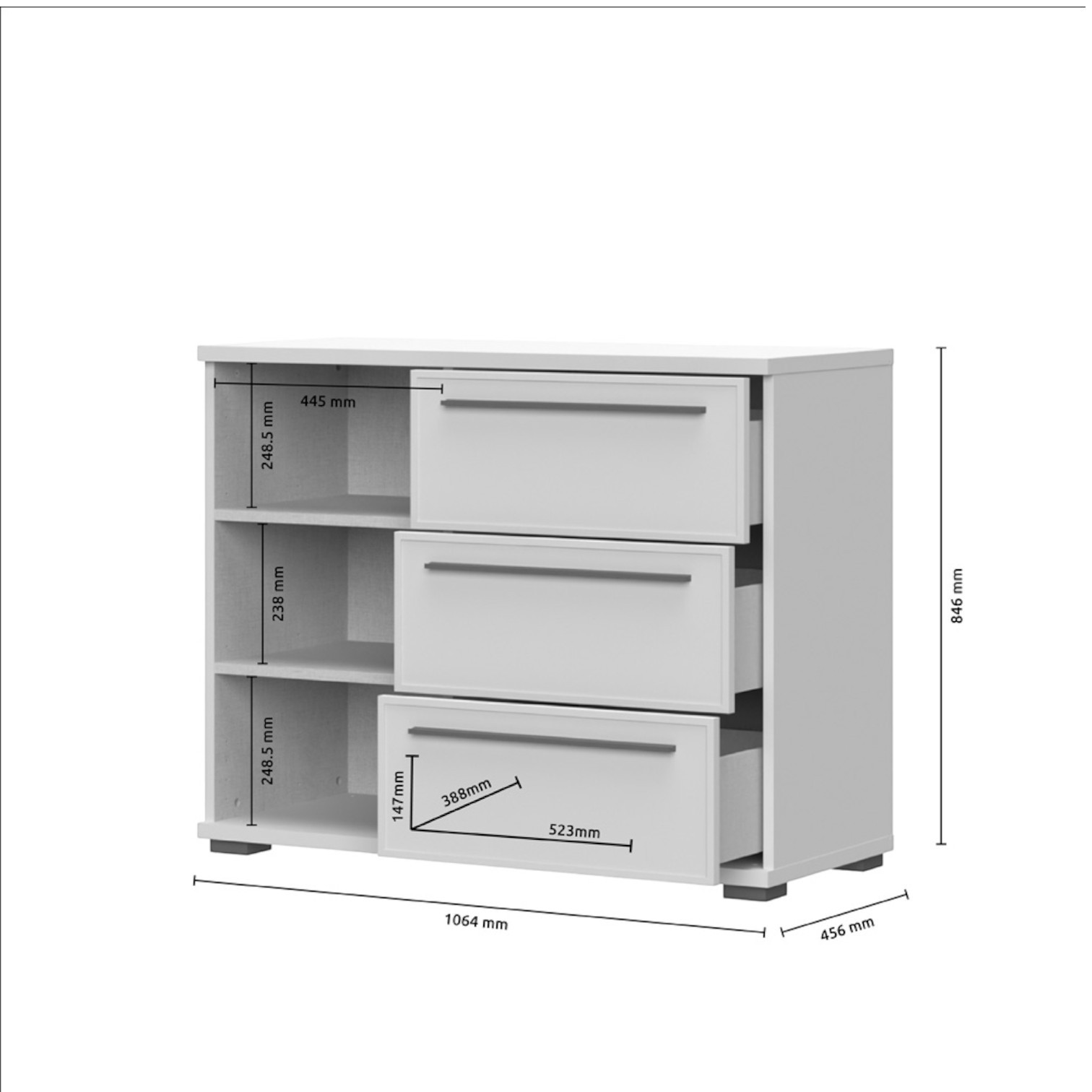 Dimenzije komode su 107x85x45 cm (ŠxVxD).