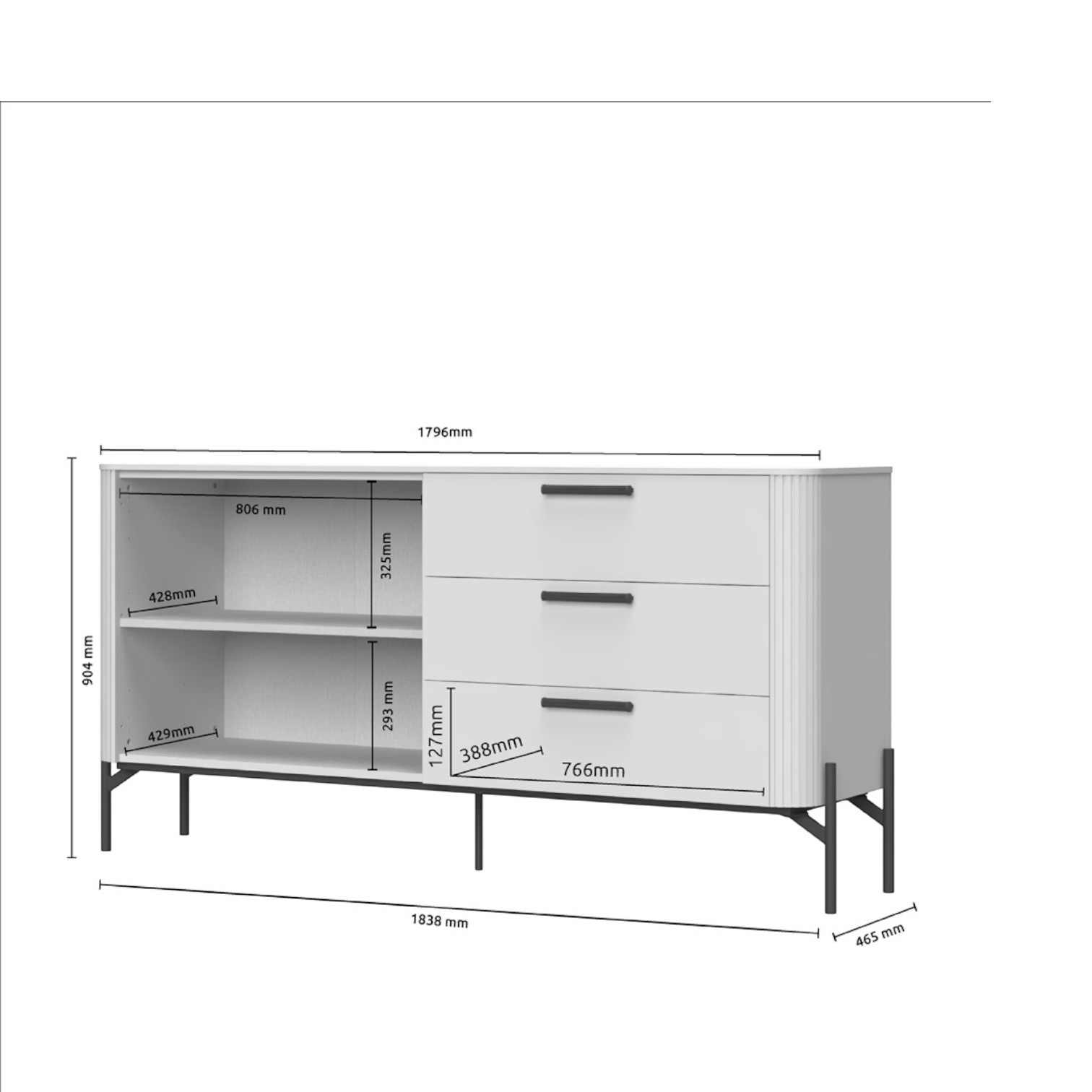 Dimenzije komode su 180x91x46 cm (ŠxVxD).