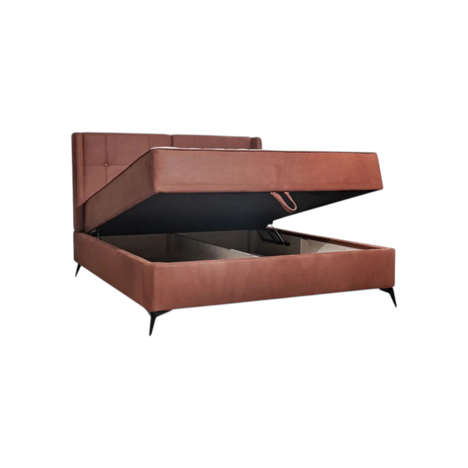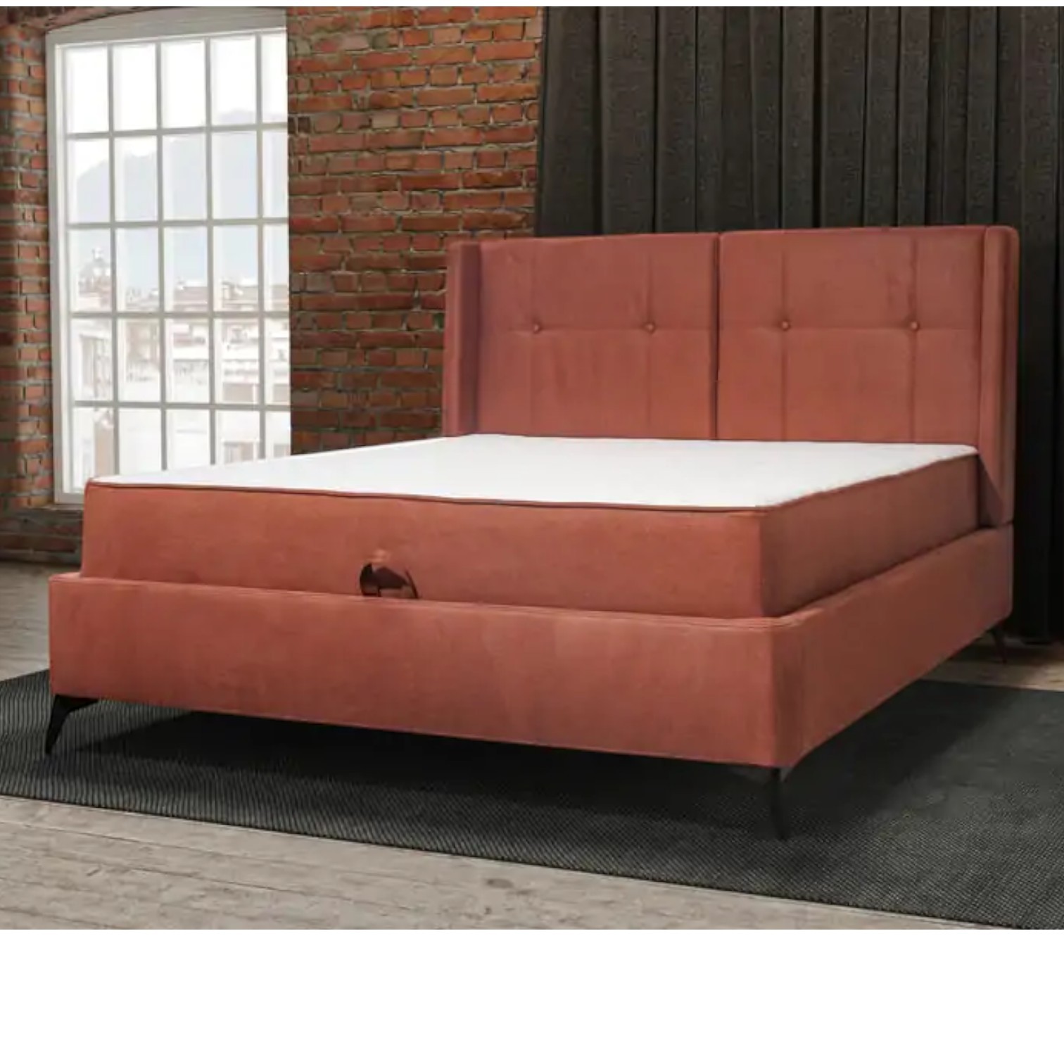 Bračni krevet modernog dizajna. Postoji mogućnost kombiniranja više od 200 boja, uzoraka. Vrlo udobna džepičasta jezgra s ležećim dijelom i memorijskom spužvom. Veliki izbor materijala. Drvena konstrukcija daje snagu i izdržljivost. Krevet sa metalnim nogama. Krevet ima prostor za odlaganje stvari.