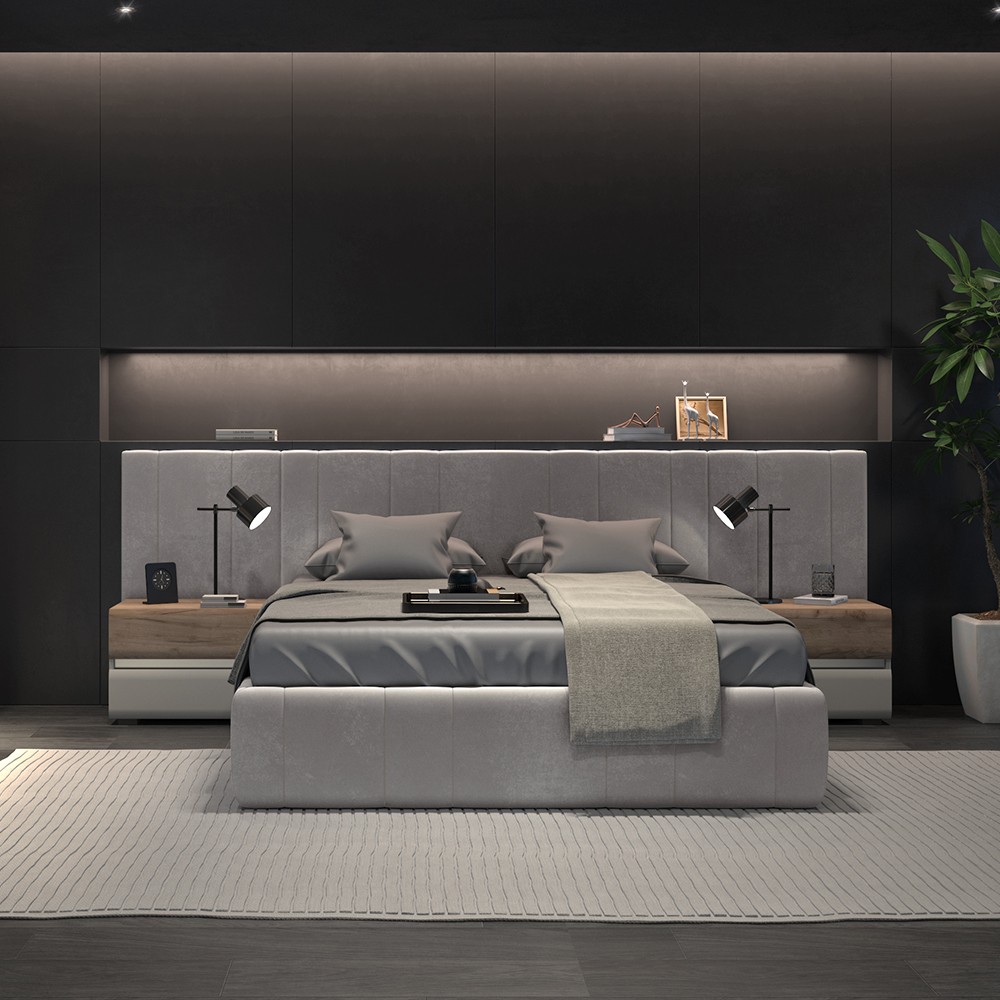 Krevet iz kolekcije Invictus, presvučen najkvalitetnijim plišem za maksimalnu udobnost u Vašoj spavaćoj sobi. Konstrukcija kreveta izrađena je od šperploče tapecirane u boji uzglavlja. Metalni okvir s latoflex letvicama, podiže se zahvaljujući mehanizmu za podizanje i omogućuje potpuno iskorištenje prostora ispod podnice. Uzglavlje je izrađeno od pliš materijala, krevet je predviđen za standardnu ​​veličinu madraca (160x200 cm). Krevet se isporučuje bez madraca. Ovaj model nema dizajniranu ladicu.