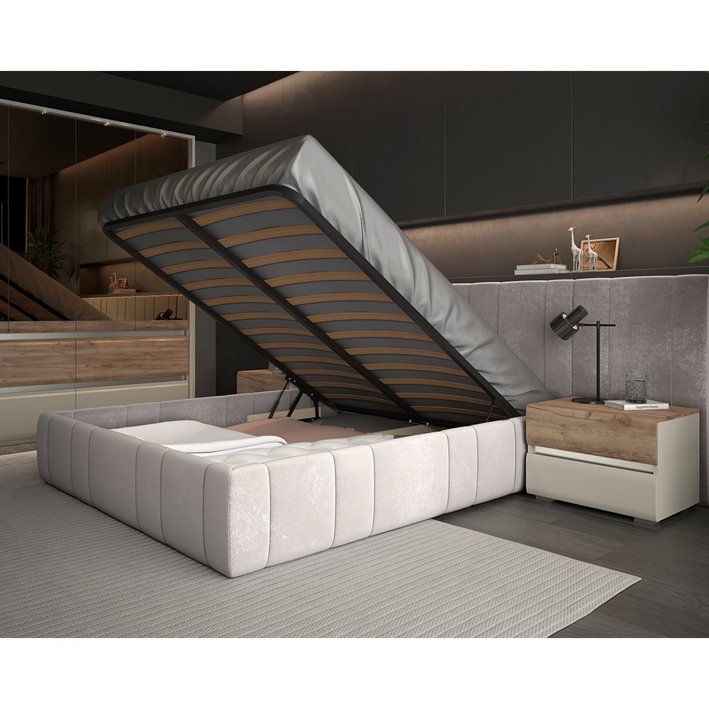 Krevet iz kolekcije Invictus, presvučen najkvalitetnijim plišem za maksimalnu udobnost u Vašoj spavaćoj sobi. Konstrukcija kreveta izrađena je od šperploče tapecirane u boji uzglavlja. Metalni okvir s latoflex letvicama, podiže se zahvaljujući mehanizmu za podizanje i omogućuje potpuno iskorištenje prostora ispod podnice. Uzglavlje je izrađeno od pliš materijala, krevet je dizajniran za standardnu ​​veličinu madraca (180x200 cm). Krevet se isporučuje bez madraca. Ovaj model nema dizajniranu ladicu.