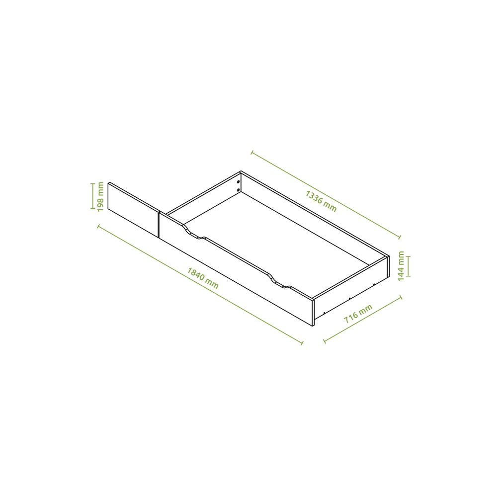 Dimenzija ladice za krevet je 72x21x138 cm (ŠxVxD).