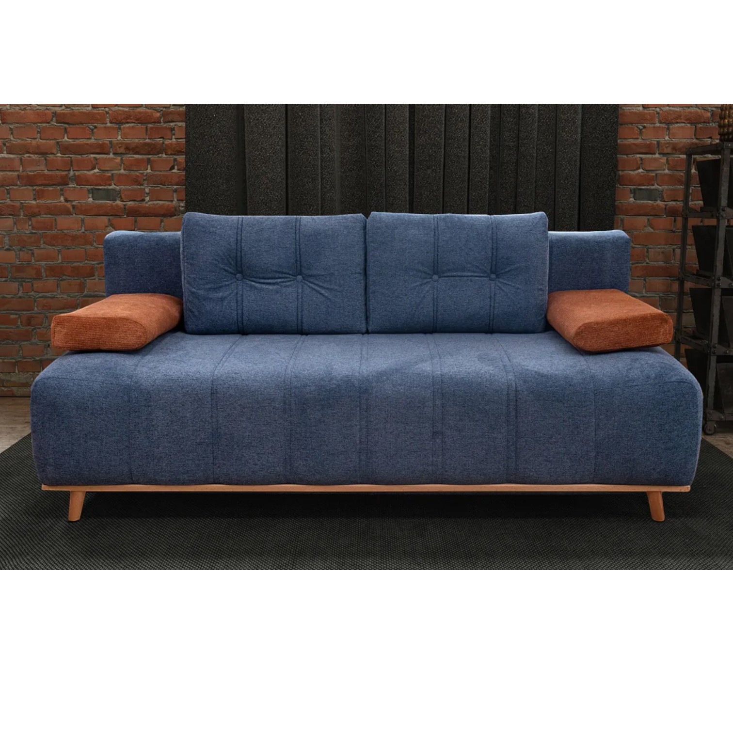 Ležaj je modernog dizajna. Postoji mogućnost kombiniranja boja, uzoraka. Vrlo udoban, sjedeći dio, žičana jezgra. Veliki izbor materijala. Drvena konstrukcija daje snagu i izdržljivost. Krevet sa metalnim nogicama. Krevet ima prostor za odlaganje. Jastuci su uključeni u cijenu.