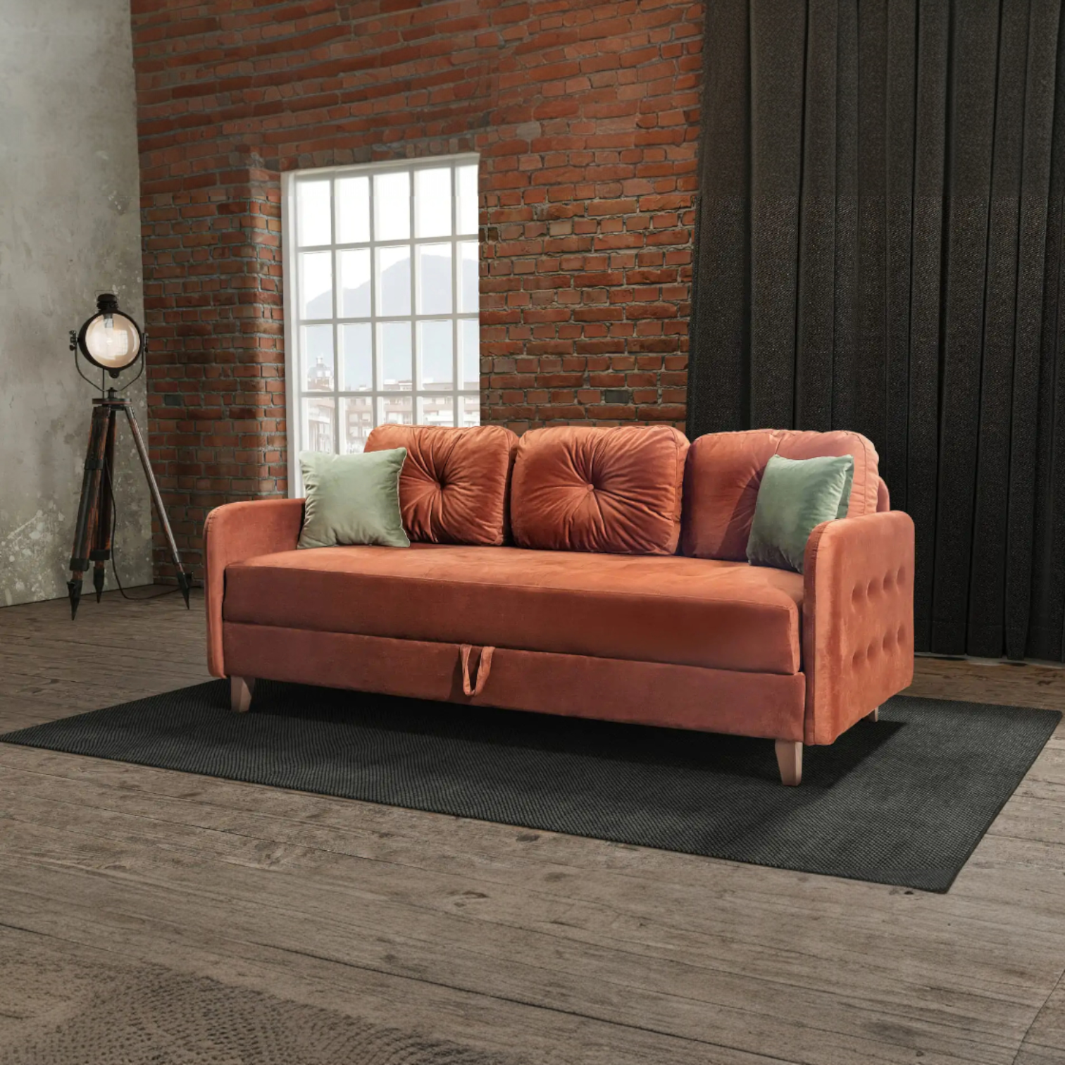 Ležaj klasičnog, elegantnog dizajna. Postoji mogućnost kombinacije boja, uzoraka.Vrlo udobna, sjedeći dio je žičana jezgra. Veliki izbor materijala. Drvena konstrukcija daje snagu i izdržljivost. Ležaj ima prostor za odlaganje stvari.