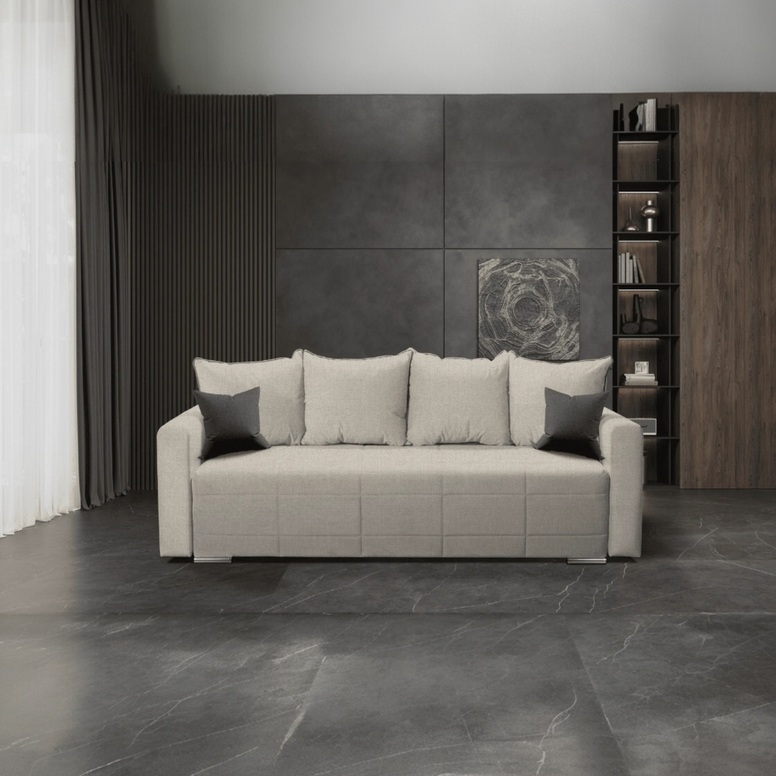 Ležaj je modernog dizajna. Moguće je kombinirati boje, uzorke. Vrlo udoban, sjedeći dio, žičana jezgra. Širok izbor materijala. Drvena konstrukcija daje snagu i izdržljivost. Ležaj ima prostor za odlaganje stvari.