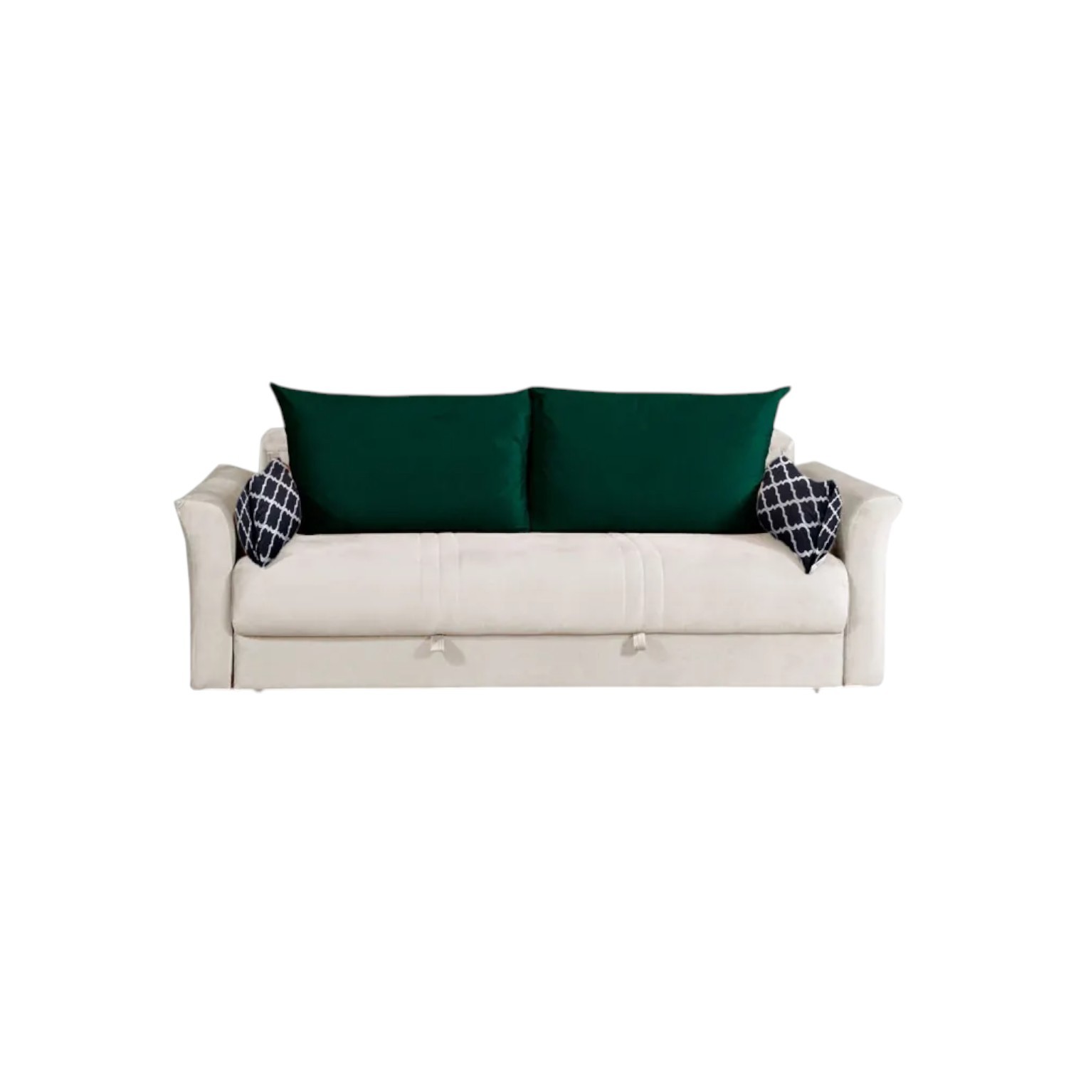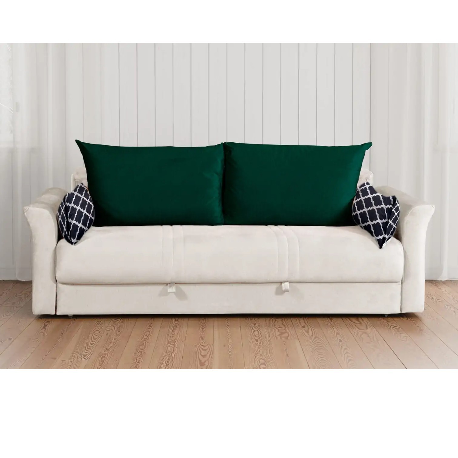 Ležaj je modernog dizajna. Moguće je kombinirati boje, uzorke. Vrlo udoban, sjedeći dio, žičana jezgra. Širok izbor materijala. Drvena konstrukcija daje snagu i izdržljivost. Krevet ima prostor za odlaganje.