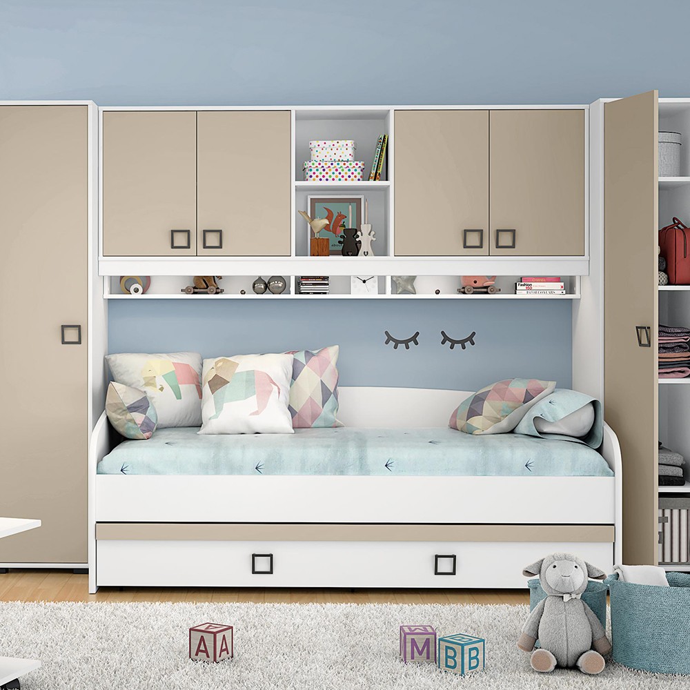 Most kreveta s dva krila, iz asortimana dječjih soba KIKI, za maksimalno iskorištenje prostora iznad kreveta. Element se montira između dva ormara ili plakara. prednji dio elementa je iveral, a možete odabrati jednu od boja iz naše palete. Korpus elementa izrađen je od šperploče, u cijenu elementa uključene su ručke, kao i soft-close šarke za tiho zatvaranje krila most kreveta ima otvorene police koje ga čine još funkcionalnijim. Osnovnu opremu elementa čine po jedna unutarnja polica u oba dvokrilna dijela metalno ojačanje kao i zaobljeni rubovi, obrubljeni ABS rubnom trakom, izrađeni od ekoloških materijala, pridonijet će sigurnosti vaše djece. Kompletni okovi za namještaj i montažna šema učinit će sastavljanje ovog elementa vrlo jednostavnim.