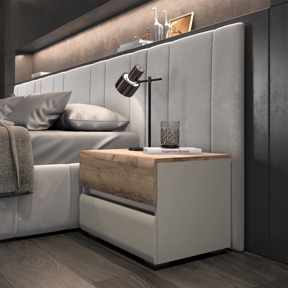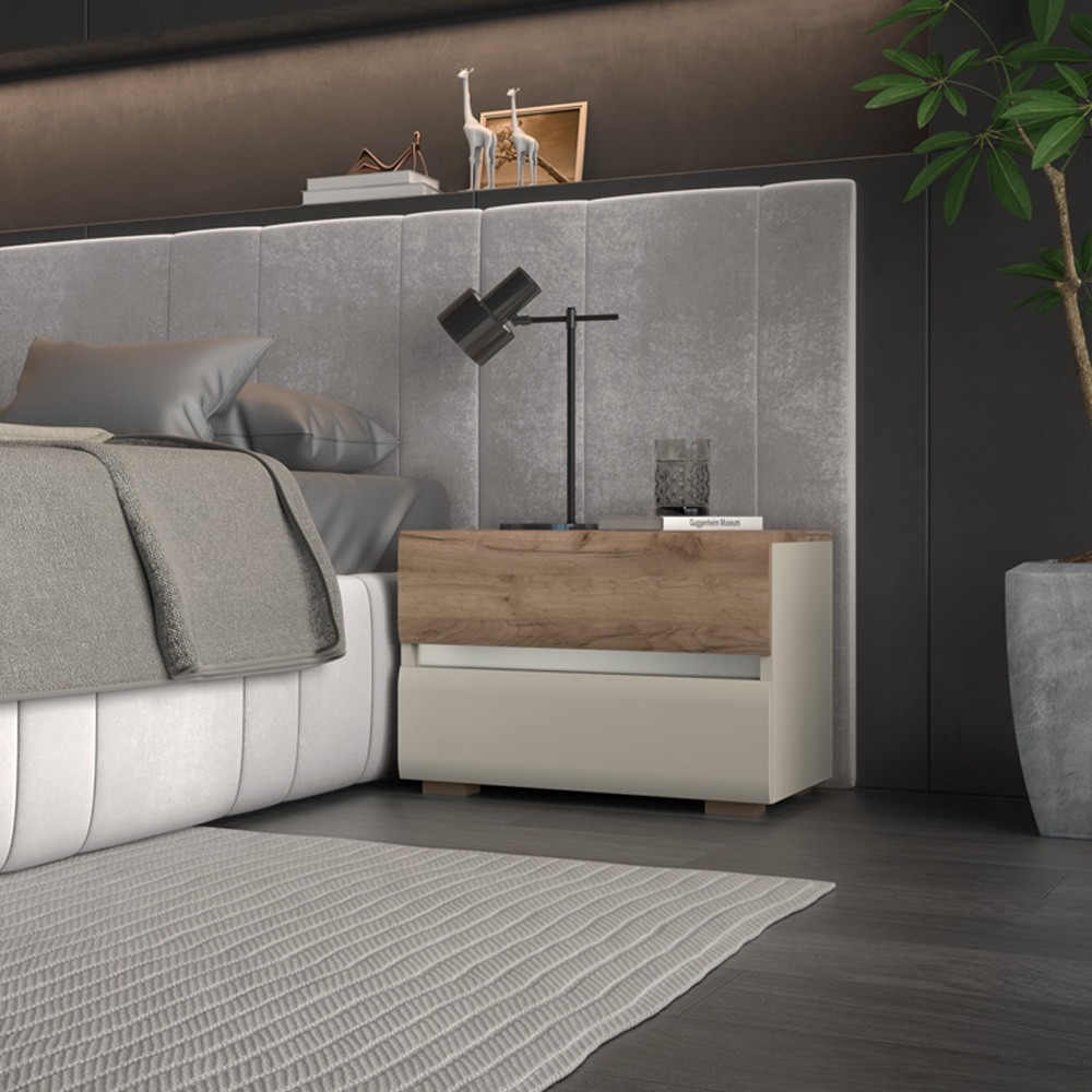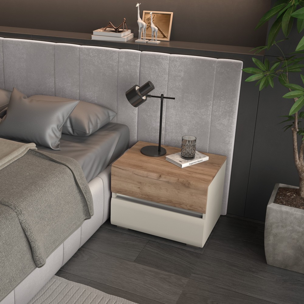 Noćni ormarić dostupan u dekoru kašmir mat lak.