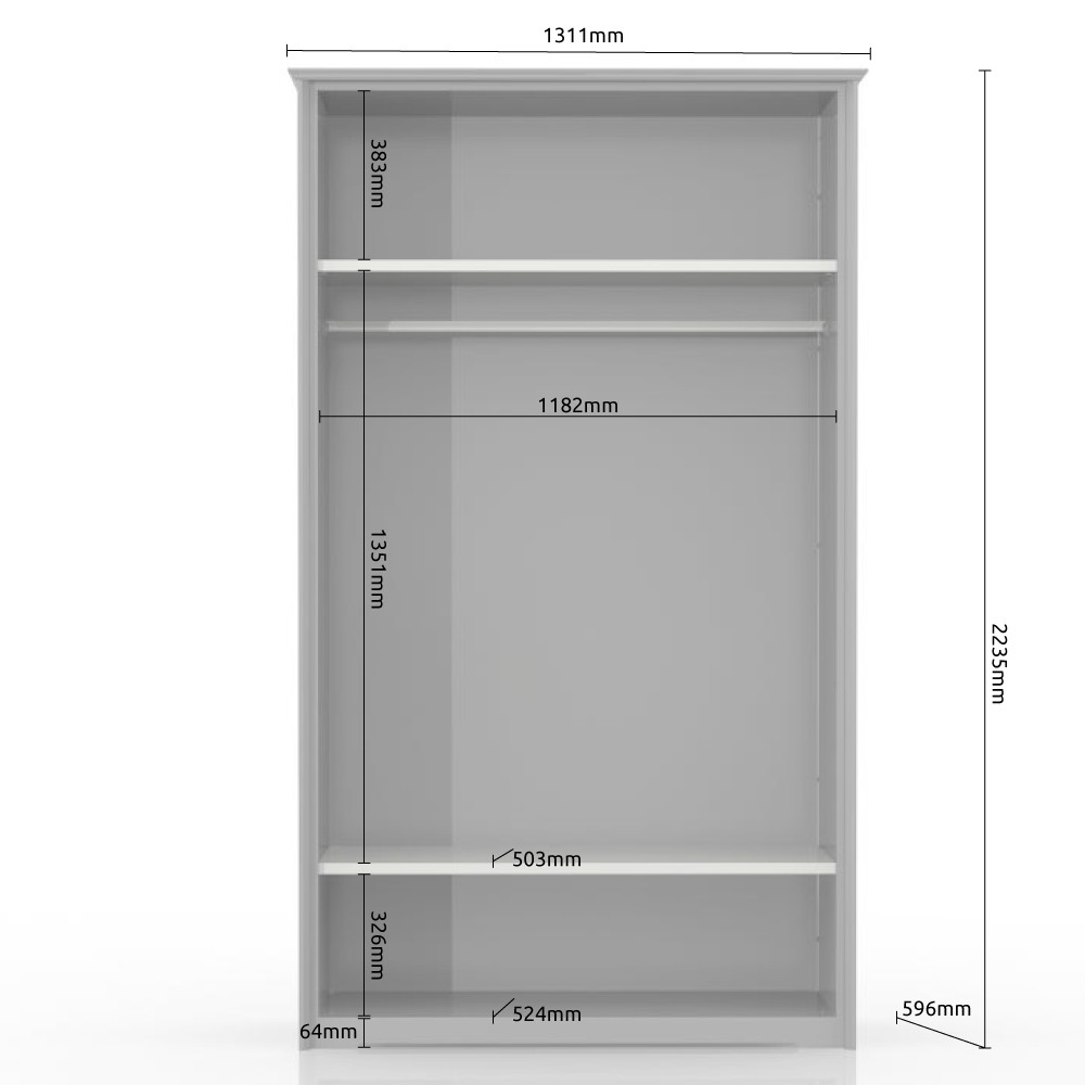 Dimenzije ormara su 131x224x58 cm (ŠxVxD).