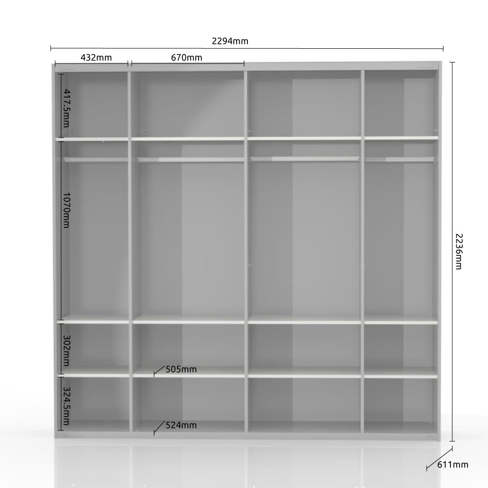 Dimenzije ormara su  230x224x61 cm (ŠxVxD).