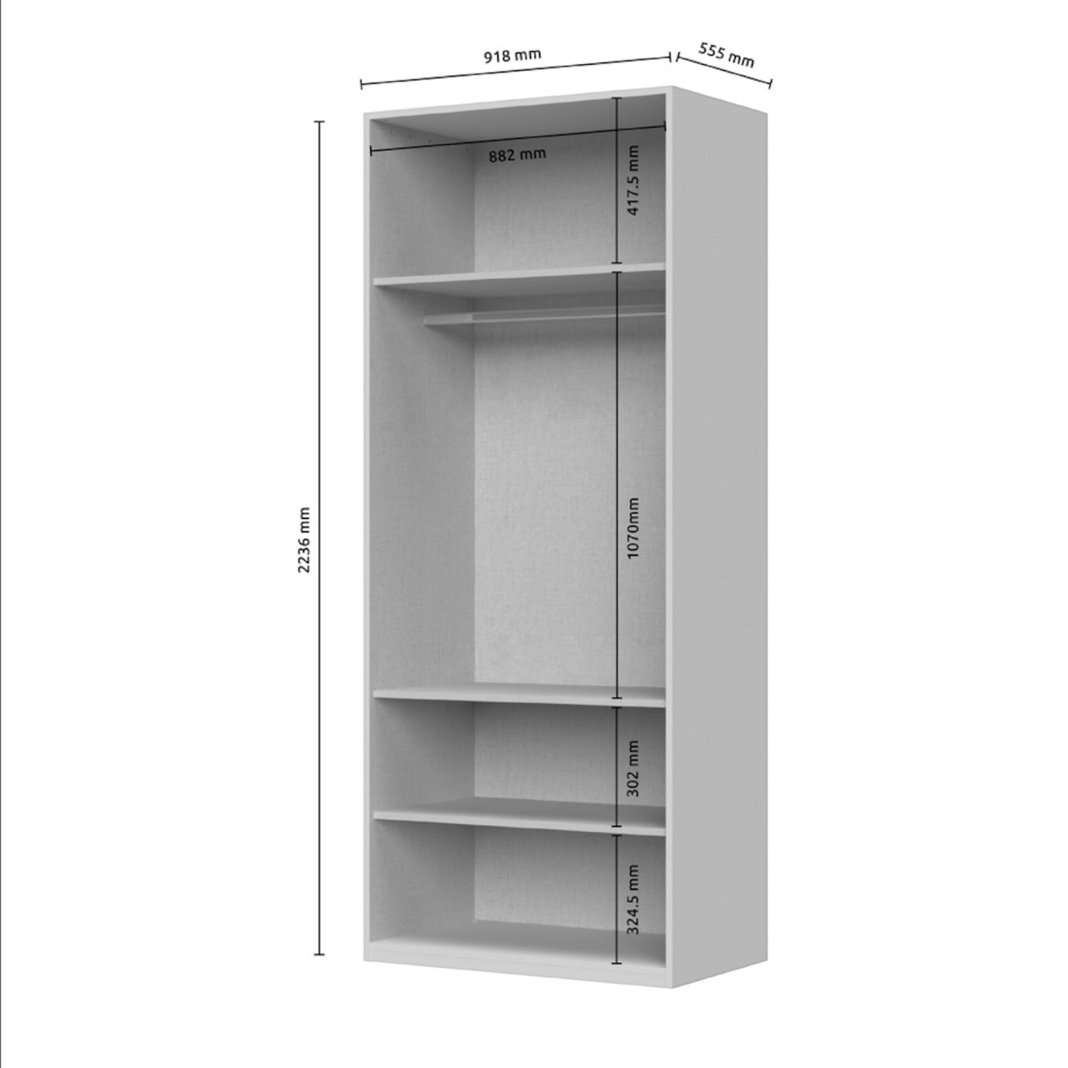 Dimenzije ormara su 92x224x56 cm (ŠxVxD).