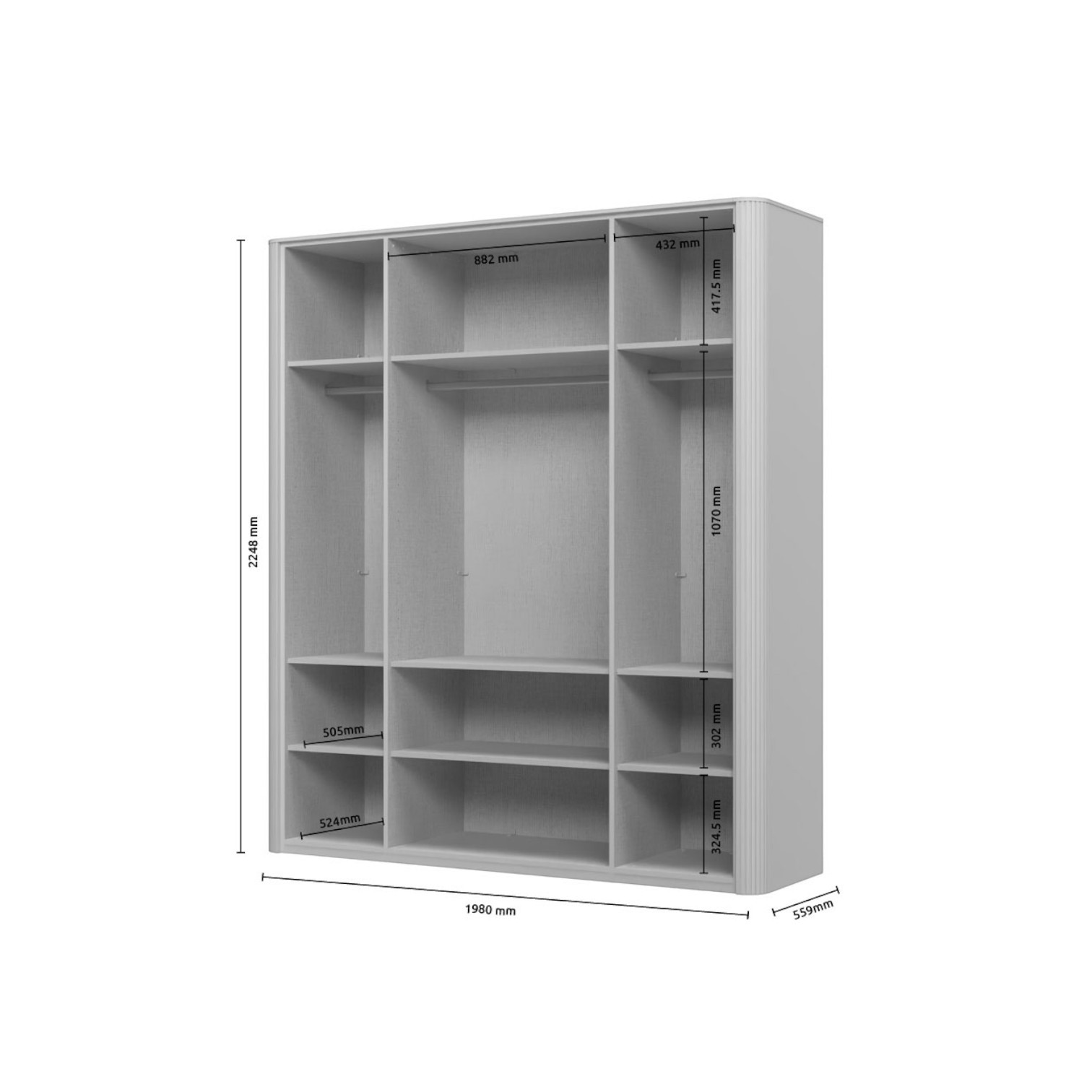 Dimenzije ormara su 198x225x56 cm (ŠxVxD).