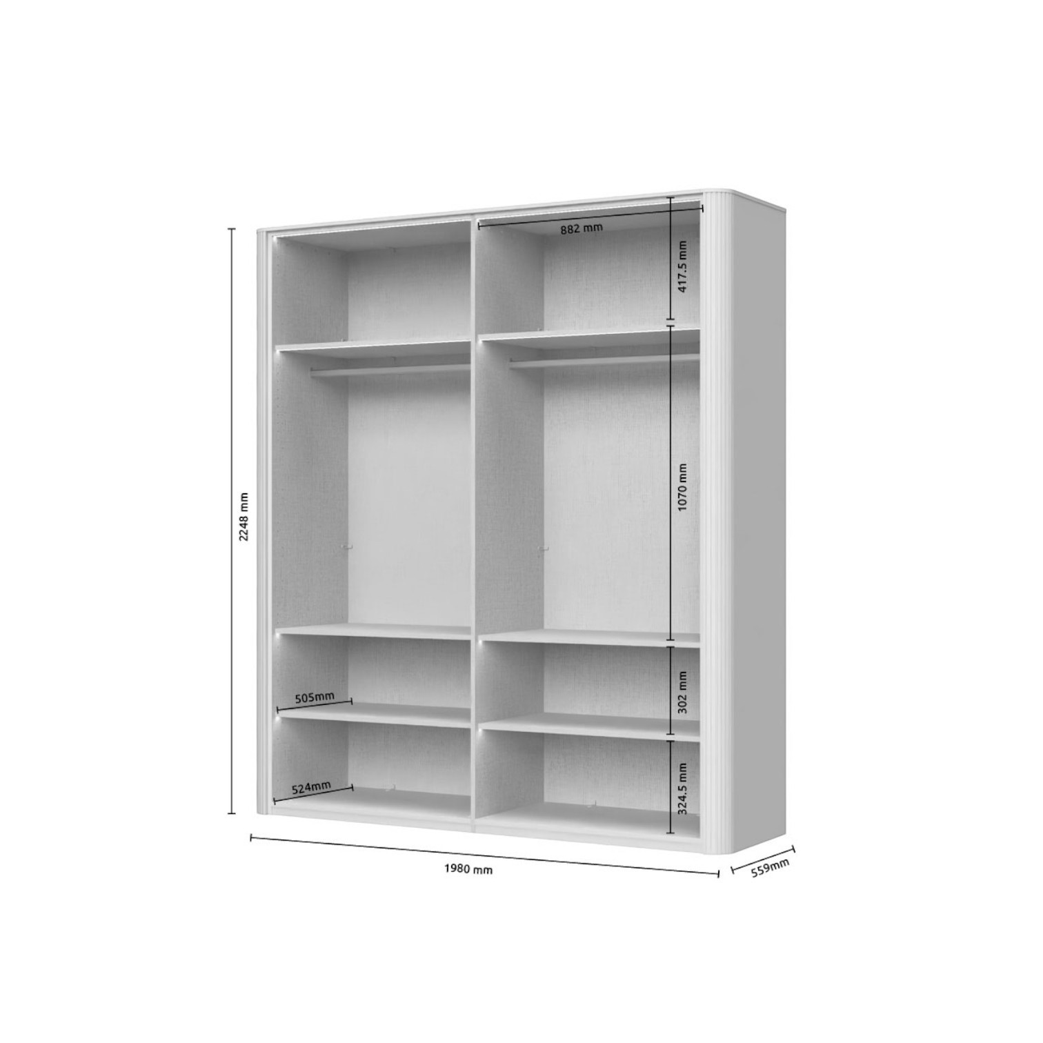 Dimenzije ormara su 198x225x56 cm (ŠxVxD).