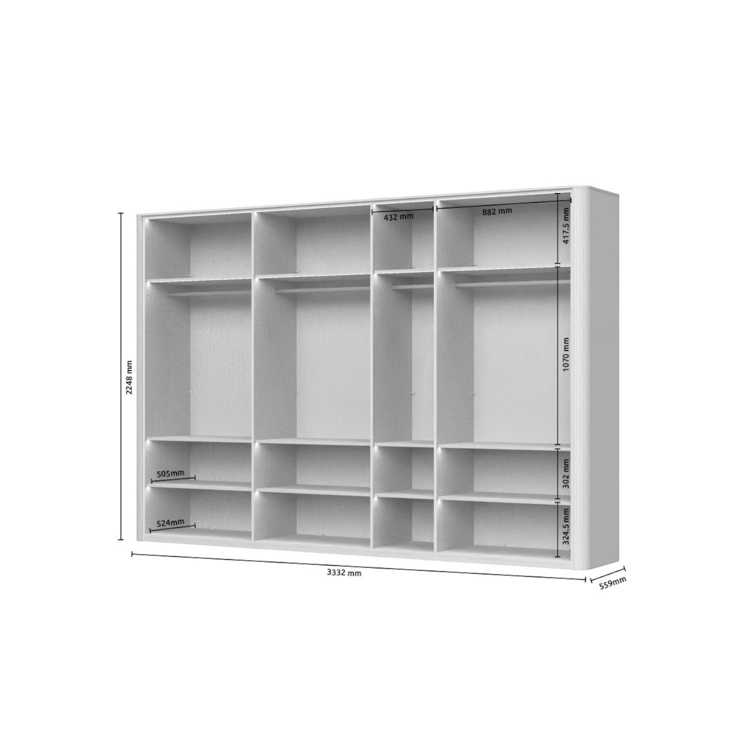 Dimenzije ormara su 333x225x56 cm (ŠxVxD).