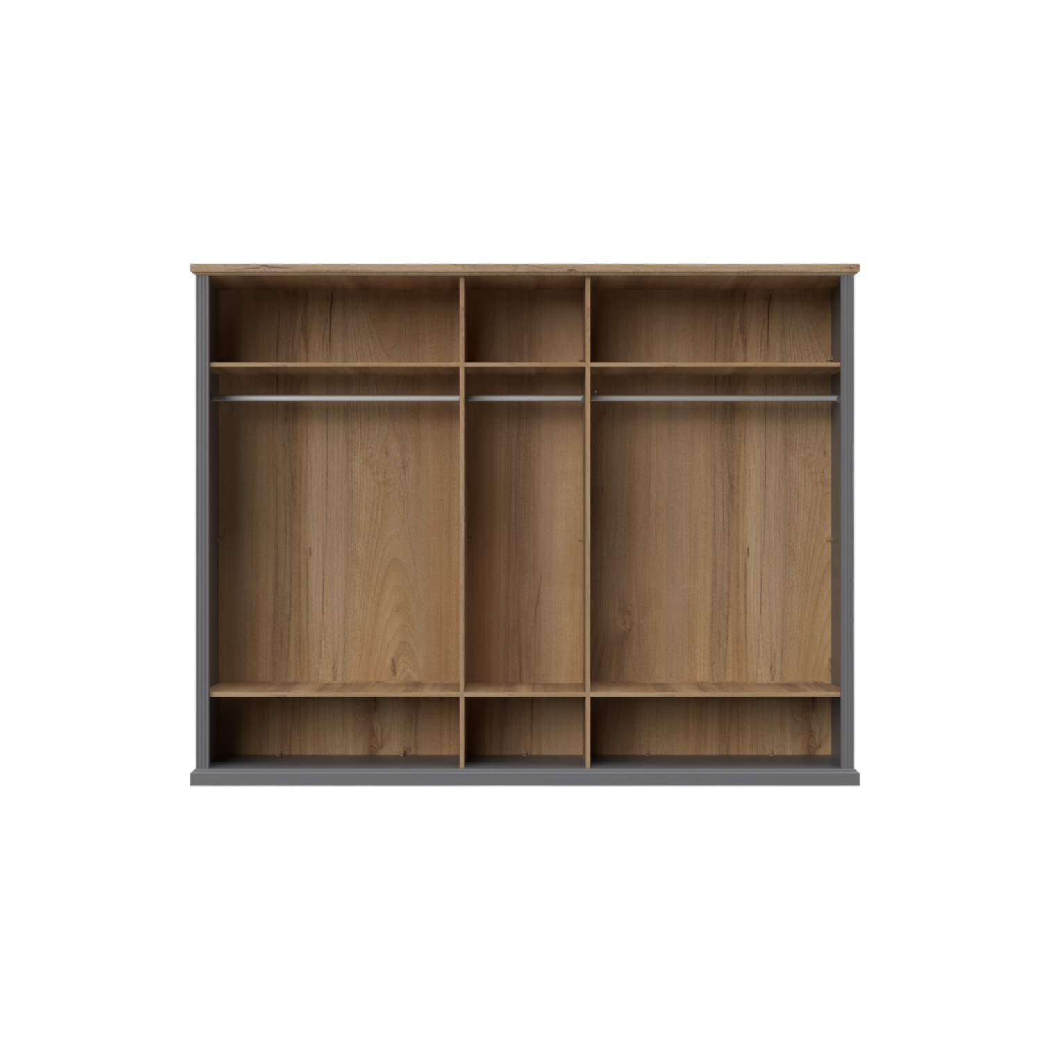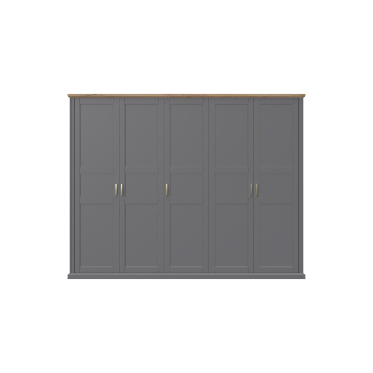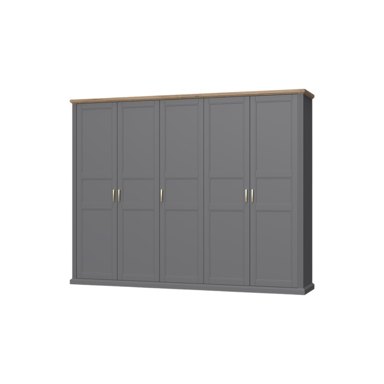 Petokrilni ormar iz luksuzne kolekcije Tara osigurat će vam dovoljno prostora za pohranjivanje vaše garderobe. Prednja strana ormara izrađena je od rezbarene šperploče lakirane UV lakom s nježnim mat efektom u grafitnoj ili bijeloj boji. Unutrašnjost ormara je u dekoru drva pacific orah, a sve vidljive stranice su lakirane UV lakom s soft mat efektom u grafitnoj ili bijeloj boji, stilski profilirane lajsne izrađene su od MDF-a debljine 25 mm. Ormar sadrži šest polica, kao i tri garderobne šipke, što ga čini izuzetno funkcionalnim. Element ima soft-close šarke za tiho i elegantno zatvaranje. Podesive nogice za izravnavanje na neravnim površinama, kao i ukrasne ručke (R-30), uključene su u cijenu elementa. Moguće je dodati više polica koje su dodatna oprema.