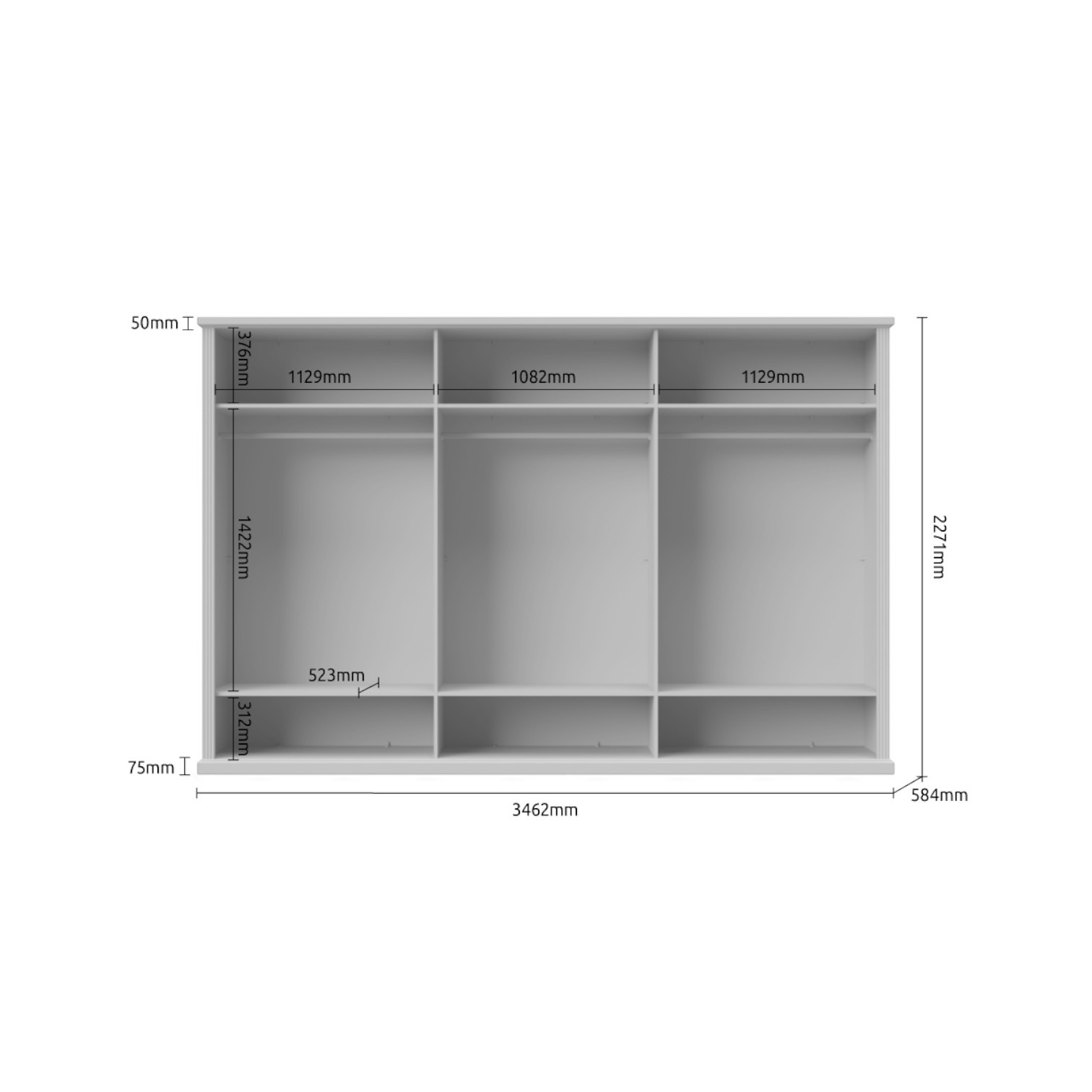 Dimenzije ormara su 346x227x59 cm (ŠxVxD).