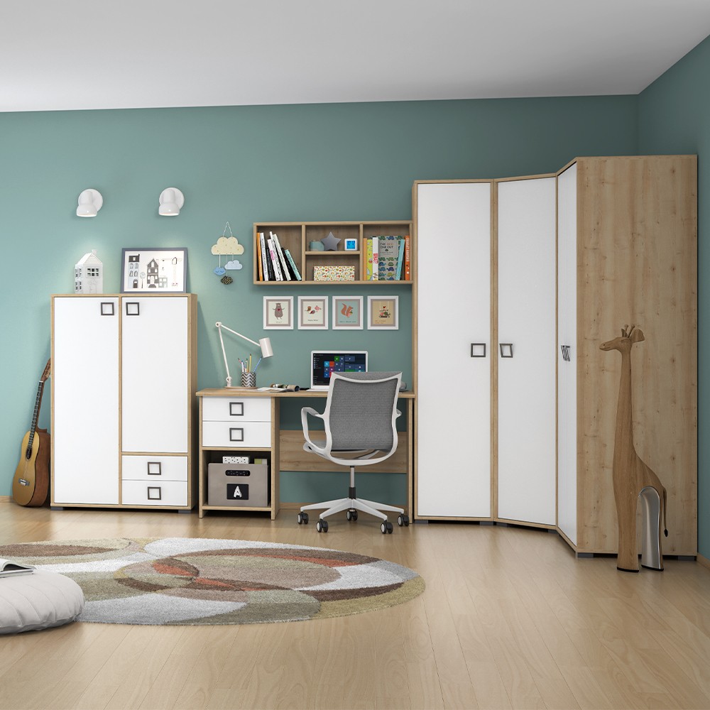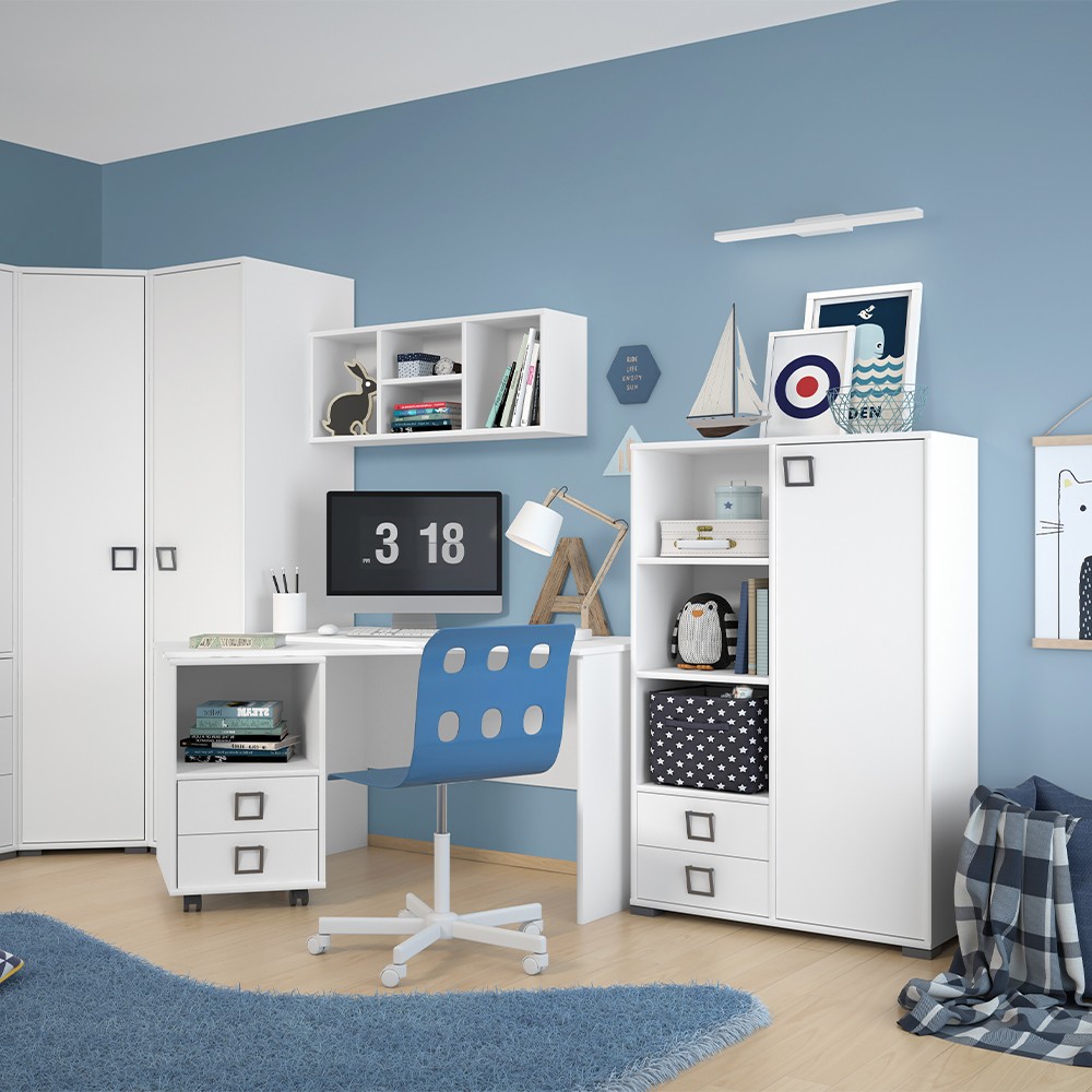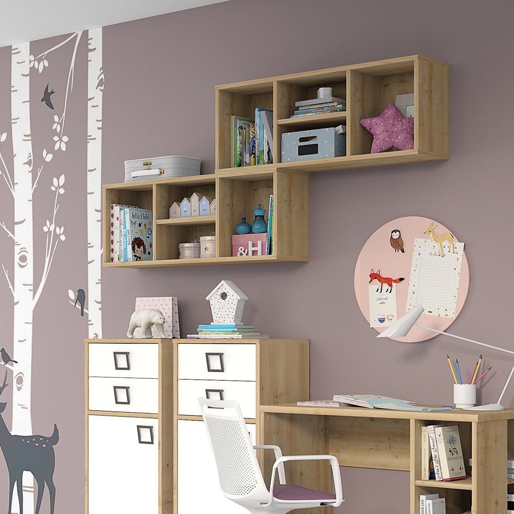 Viseća polica za dječju sobu iz kolekcije Kiki, s četiri otvorene police, upotpunit će dječju ili dnevnu sobu. Savršen prostor za izlaganje vaših dragih uspomena. Korpus elementa je izrađen od šperploče, a možete odabrati jednu od dvije boje iz naše palete: bijela boja ili drvo-dekor bukva zaobljeni rubovi, obrubljeni ABS rubnom trakom, izrađeni od ekoloških materijala, pridonijet će sigurnosti vaše djece.