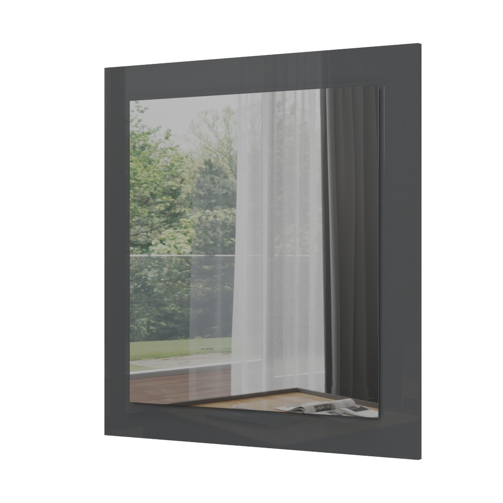 Ogledalo s podlogom obojenom UV lakom. Podloga ogledala je lakirana UV lakom visokog sjaja u atraktivnoj antracit boji. Ogledalo sa svih strana obrubljeno dekorativnom LED rasvjetom. LED napajanje je uključeno u cijenu elementa. Ogledalo opremljeno potrebnim priborom za vješanje.