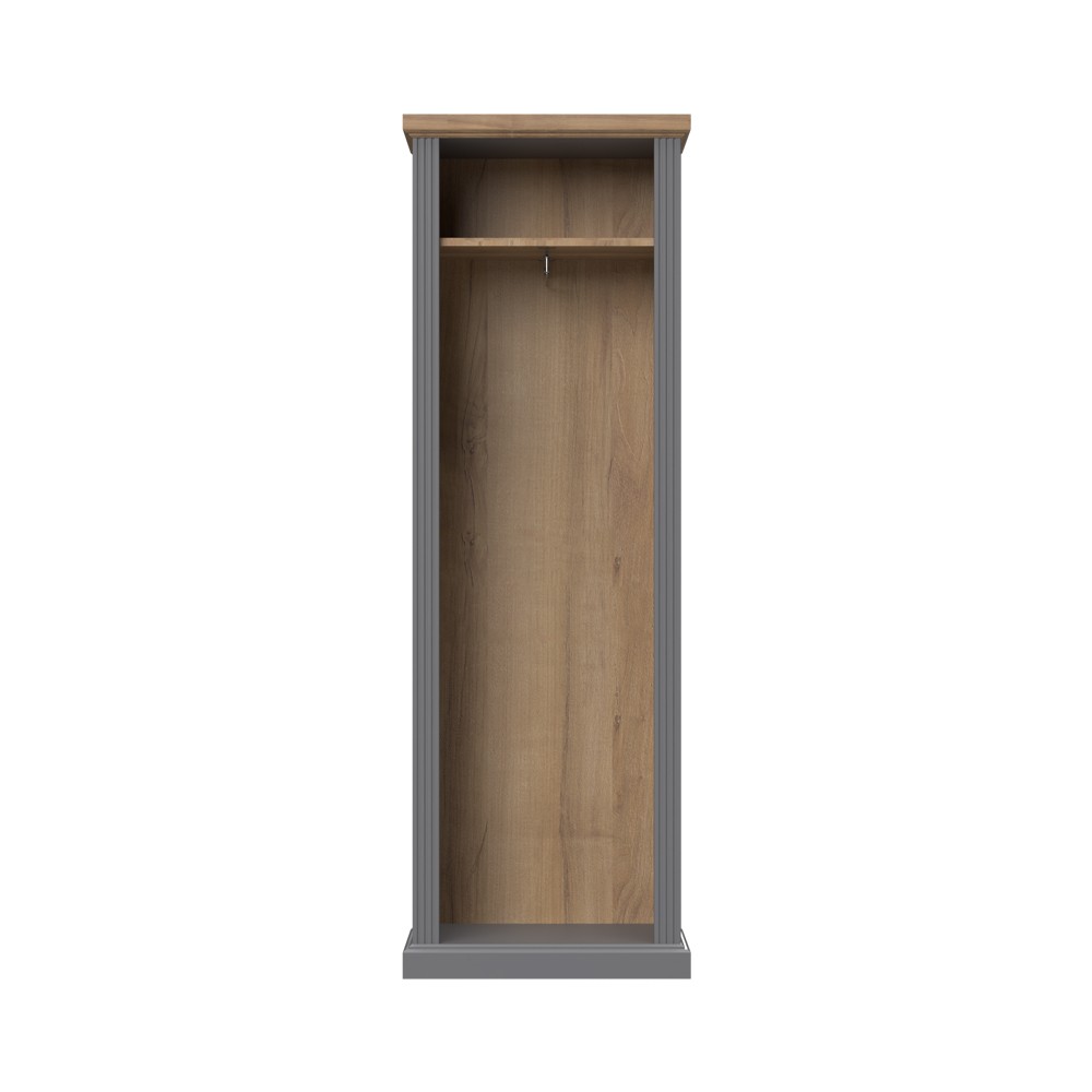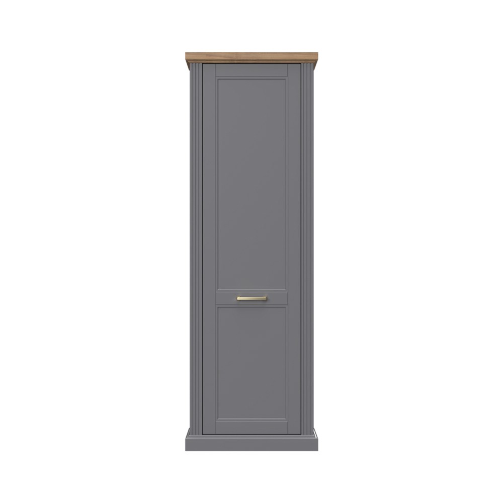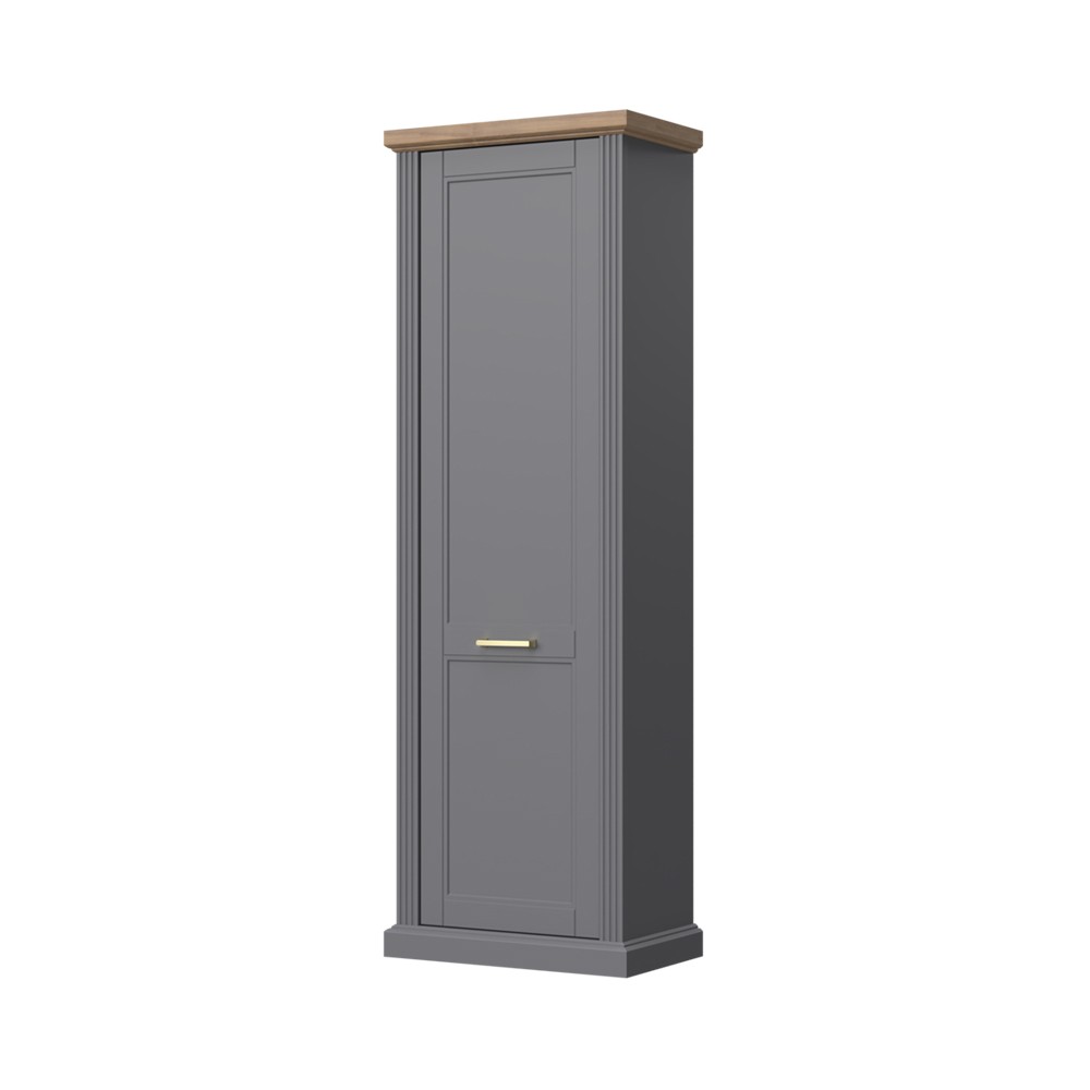 Luksuzni ormar sa jednim krilom za predsoblje iz kolekcije Tara. Rezbarena prednja strana ormara izrađena je od medijapana lakiranog UV lakom s nježnim mat efektom u grafitnoj ili bijeloj boji. Korpus elementa izrađen je od šperploče u dekoru pacifik orah. Vidljive strane korpusa lakirane su UV lakom s soft mat efektom u grafit ili bijeloj boji. Stilski profilirane lajsne izrađene su od MDF-a debljine 25 mm. Element sadrži jednu policu od iverala u drvo dekoru orah pacifik i garderobnu šipku s funkcijom izvlačenja. Ormar ima soft-close šarke za tiho i elegantno zatvaranje, podesive nogice za izravnavanje na neravnim površinama, kao i ukrasne ručke (R-30), uključene su u cijenu elementa. Moguće je dodati još polica koje su dodatna oprema.