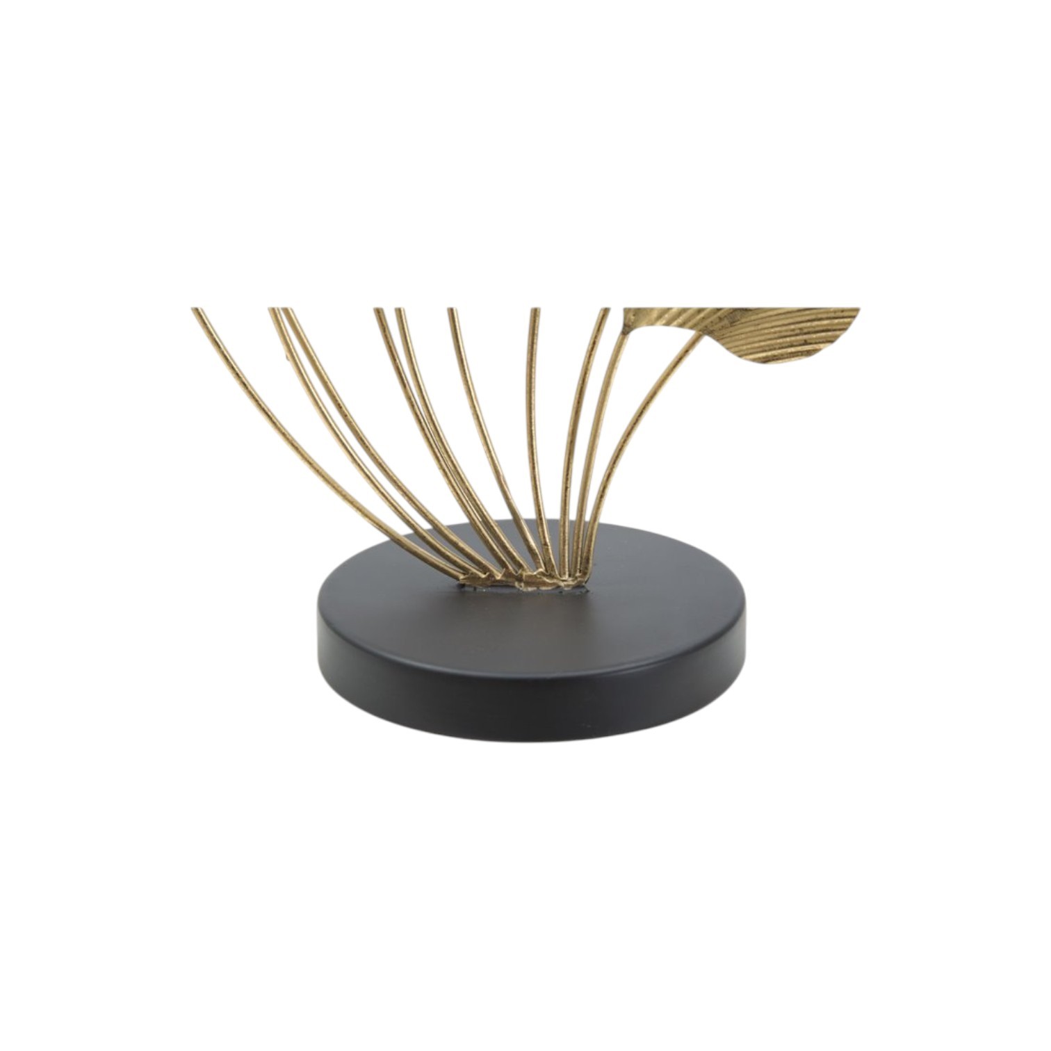 Artikl pažljivo odabran za ukrašavanje namještaja na kojem se nalazi. Elegantna zlatna metalna skulptura s crnom bazom koja prikazuje lišće kao da ga pokreće vjetar. Kontrast s crnom bazom čini skulpturu još svjetlijom.