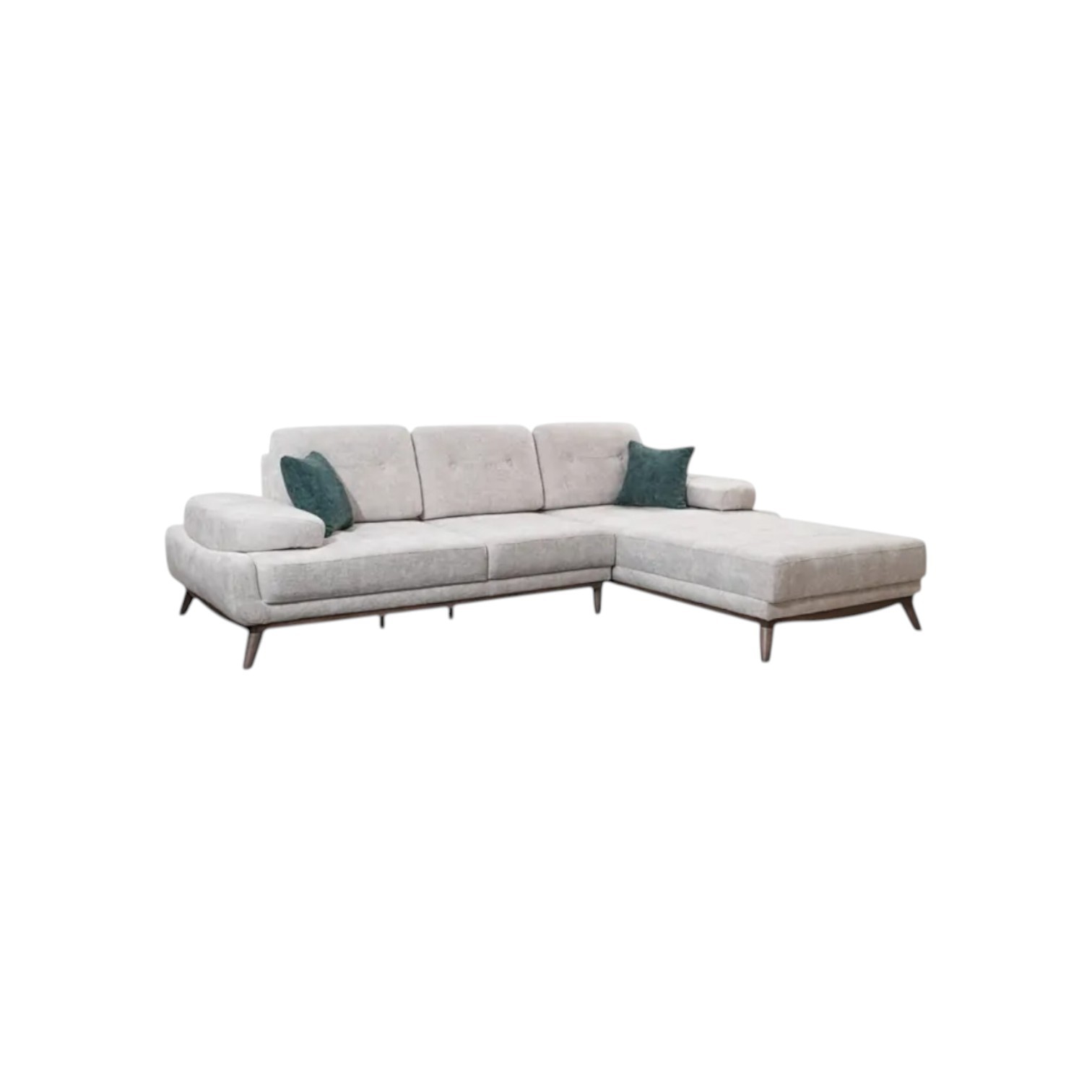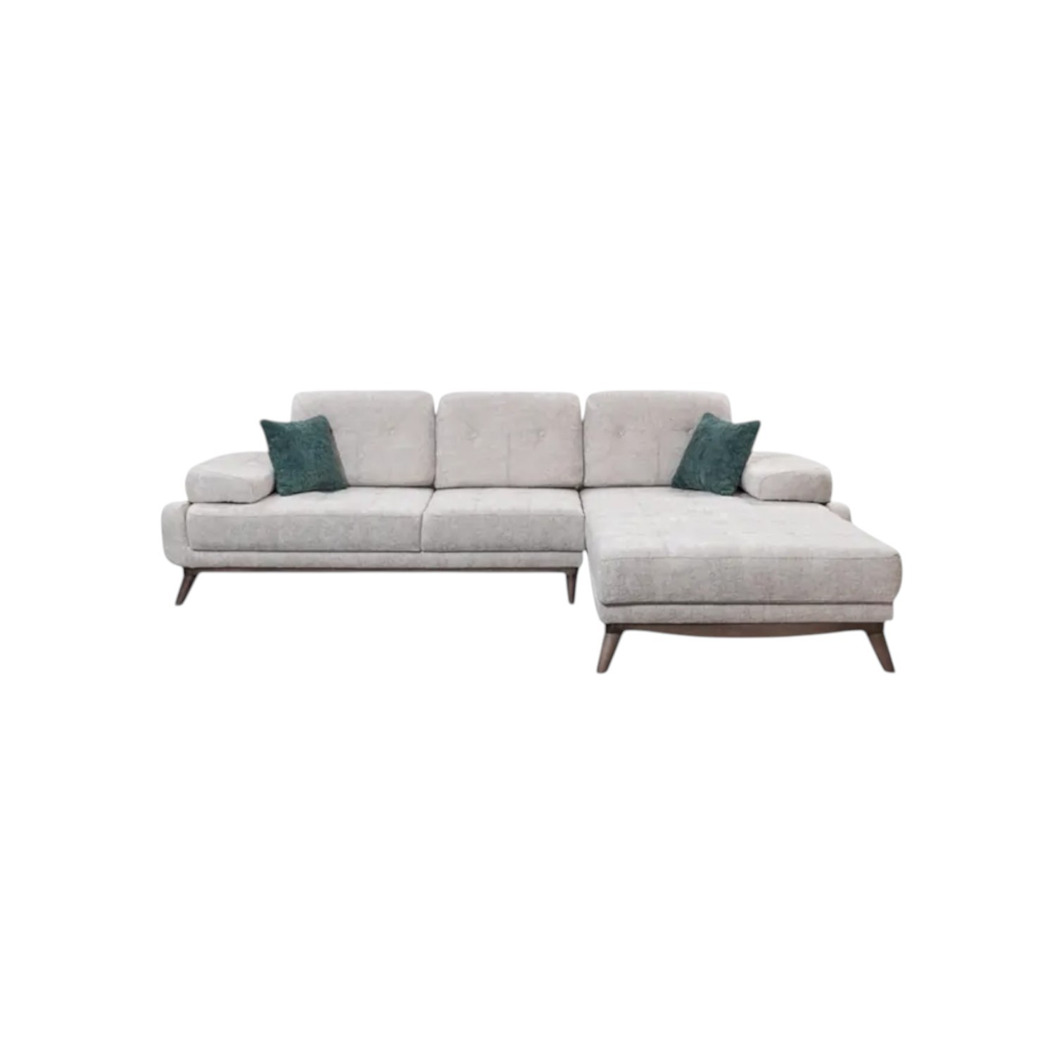 Kutna garnitura modernog dizajna, sa drvenim nogicama. Postoji mogućnost kombiniranja boja, uzoraka, te veliki izbor materijala. Vrlo udobna, sjedeći dio je suđer (gustoća 30) koji se nalazi na elastičnim trakama koje povećavaju osjećaj udobnosti. Drvena konstrukcija daje snagu i izdržljivost. Visina garniture je 75 cm, a visina sa jastukom 85 cm. Garnitura se može naručiti u tl (trosjed-damski) i dl (dvosjed-damski) varijanti. Jastuci uključeni u cijenu.