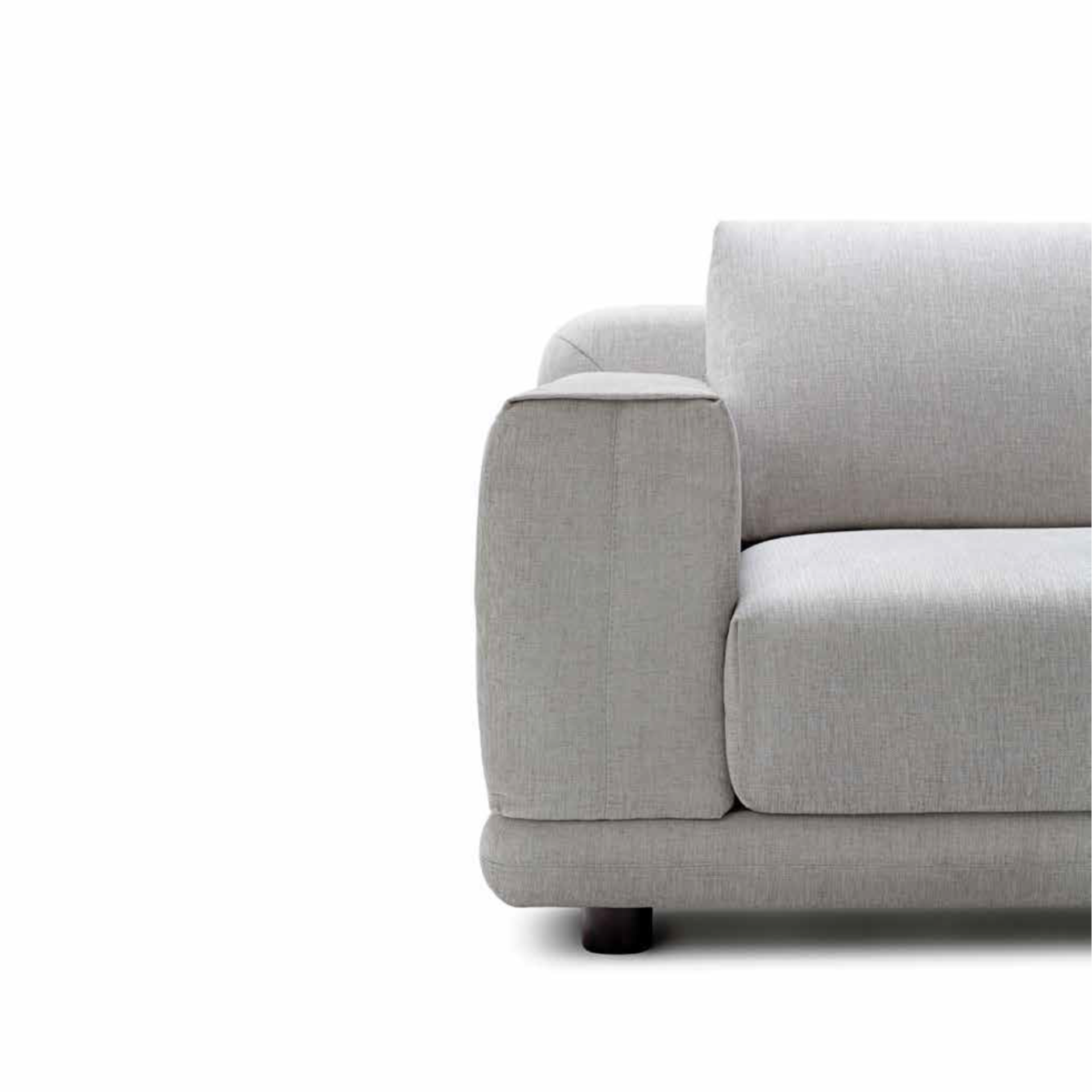 Modularna garnitura Stage s visokim naslonom može funkcinirati s velikim jastucima ili bez njih. Jedna od značajki ove arhetipske kućne garniture je mogućnost umetanja drvenih bočnih polica.