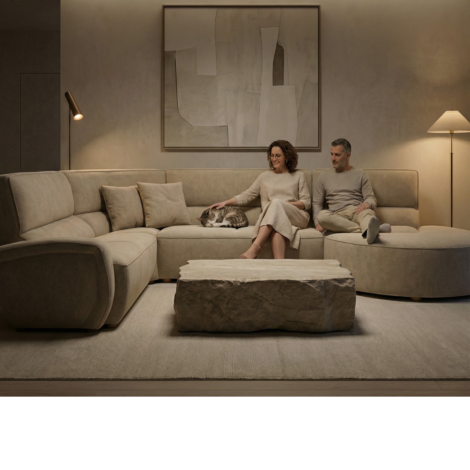 Domino je modularni set koji potiče kreativnost. Njegovi mekani oblici, izražene boje i fleksibilni moduli omogućuju slobodno oblikovanje prostora. Udoban, razigran i upečatljiv, savršen za interijere sa stavom.