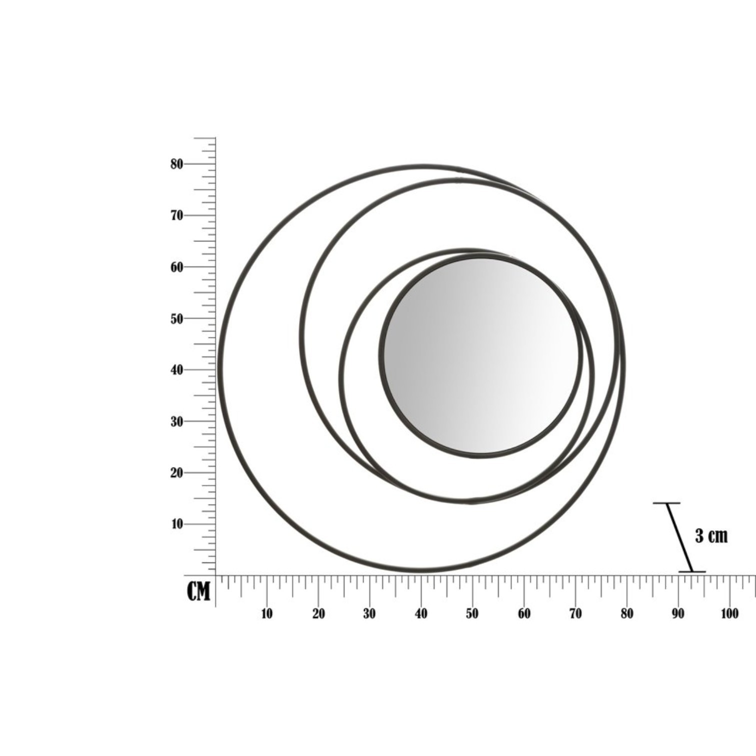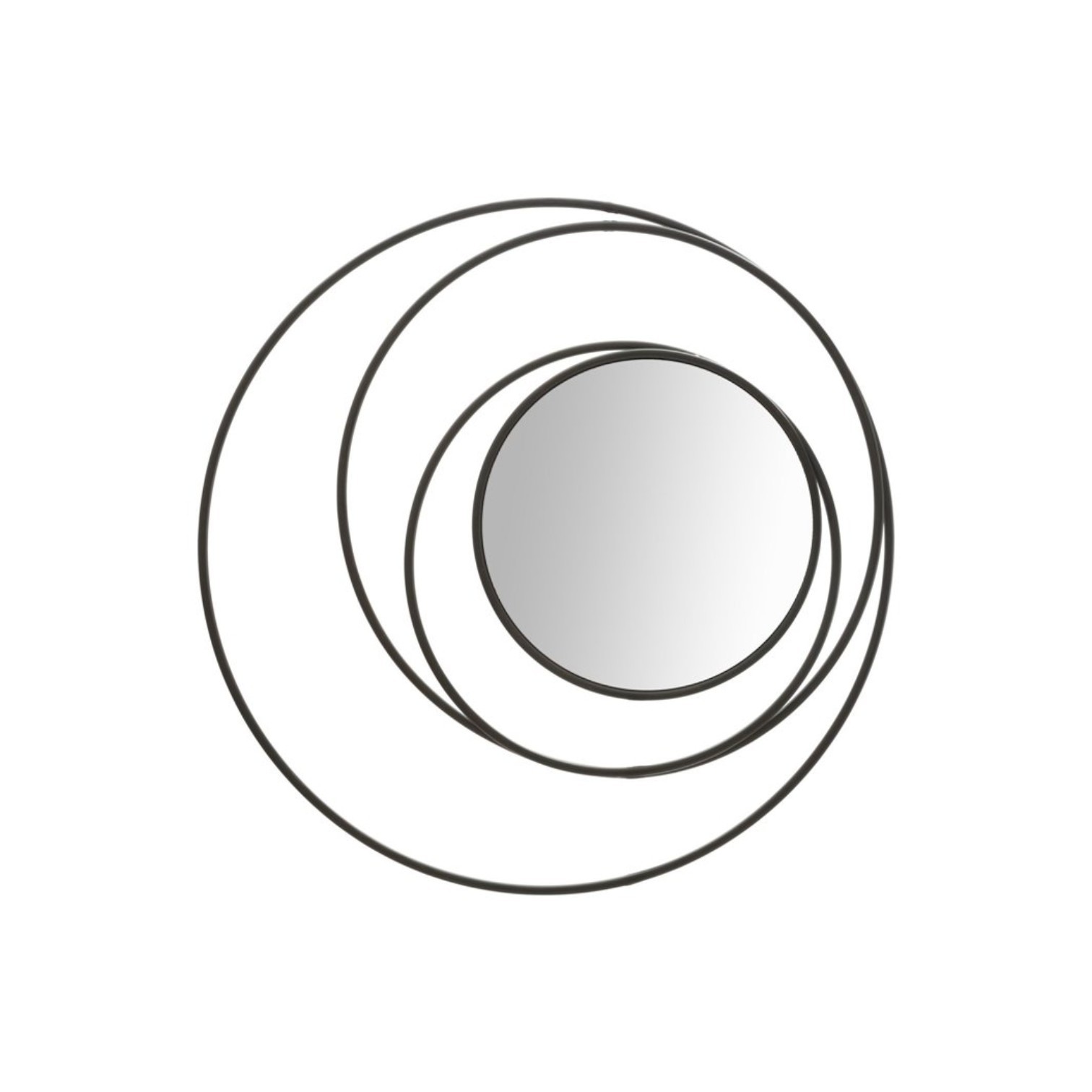 Okruglo zidno ogledalo od crnog metala. Ogledala su neizostavan element koji daje svjetlinu svakom namještaju. Optički povećavaju prostore i stvaraju sofisticiranu svjetlosnu točku. Geometrijski ukrasni elementi stvaraju vrtlog.