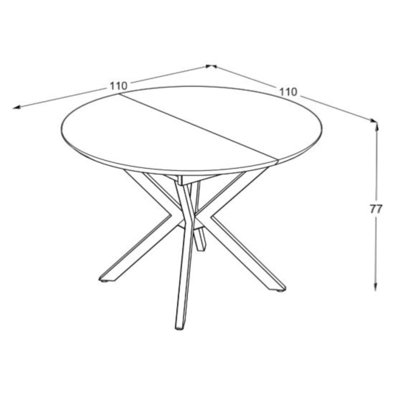 Dimenzije stola su 110x110/145x77 cm (DxŠxV).