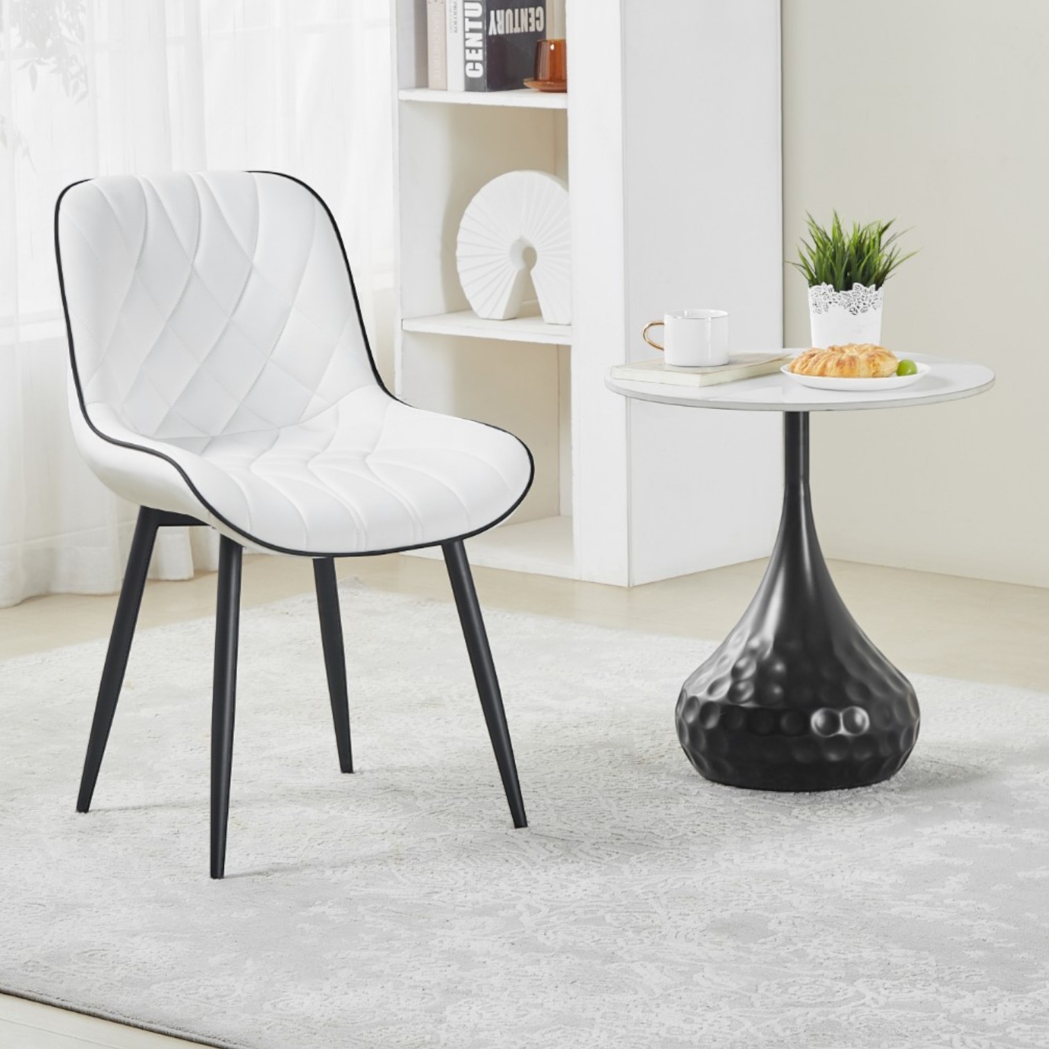 Blagovaonska stolica u bijeloj boji. Težina stolice je 12,4 kg. Pakovano po dva komada, cijena vrijedi za jedan komad.