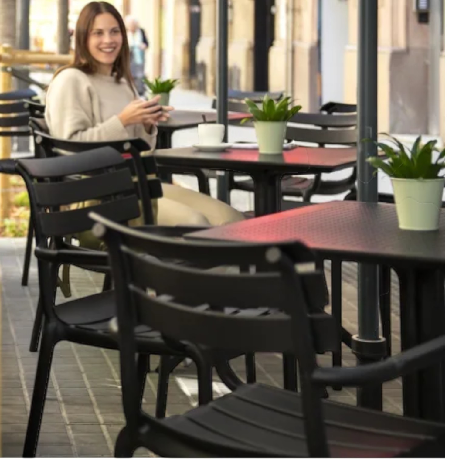 Stolica Helen izrađena je tehnologijom jednokratnog ubrizgavanja polipropilena ojačanog staklenim vlaknima, koristeći najnoviju tehnologiju zračnog kalupljenja. Stolica dolazi u neutralnim tonovima koji se prilagođavaju svakom prostoru, a pogodna je za unutarnju i vanjsku upotrebu.