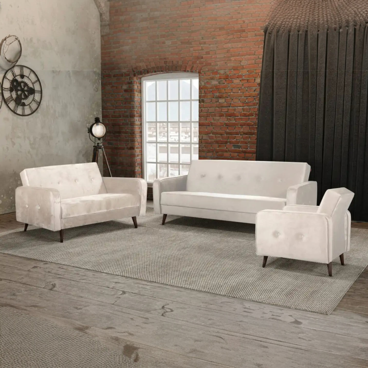 Set se sastoji od trosjeda dimenzija 220x97x95 cm (korisna površina za spavanje je 190x120 cm), dvosjeda dimenzija 167x97x95 cm i fotelje 85x97x95 cm. Iskazana cijena vrijedi za osnovnu kategoriju štofa.