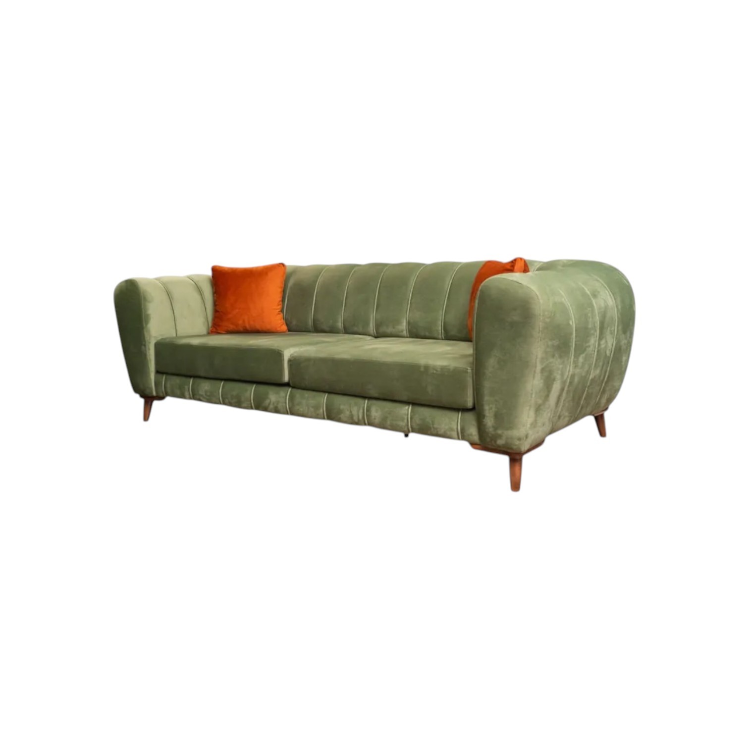 Trosjed modernog dizajna, s kromiranim metalnim nogicama. Vrlo udoban, sjedeći dio je spužva (gustoća 30) koja se nalazi na elastičnim trakama koje povećavaju osjećaj udobnosti. Veliki izbor materijala. Drvena konstrukcija osigurava čvrstoću i izdržljivost, a metalne nogice stabilnost.