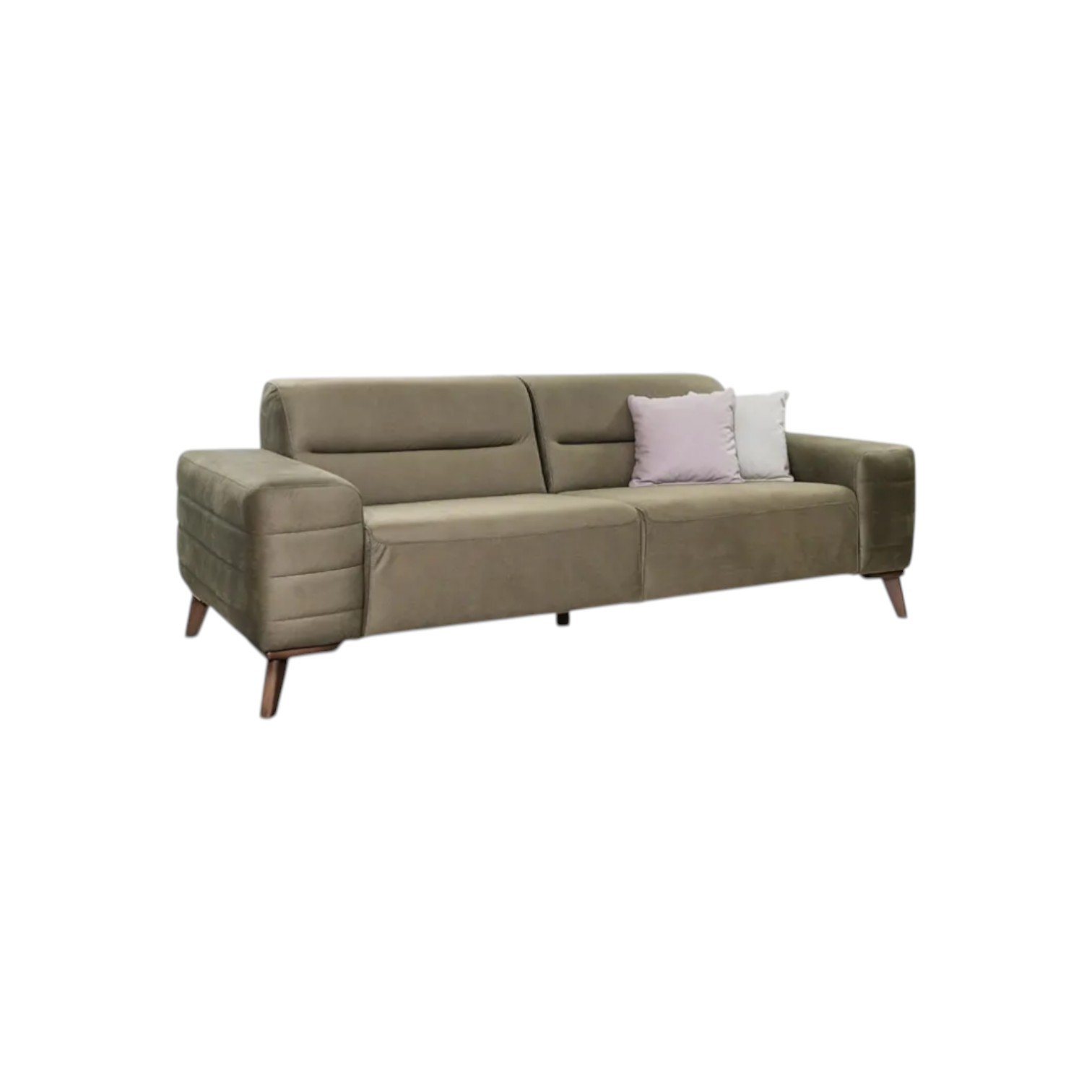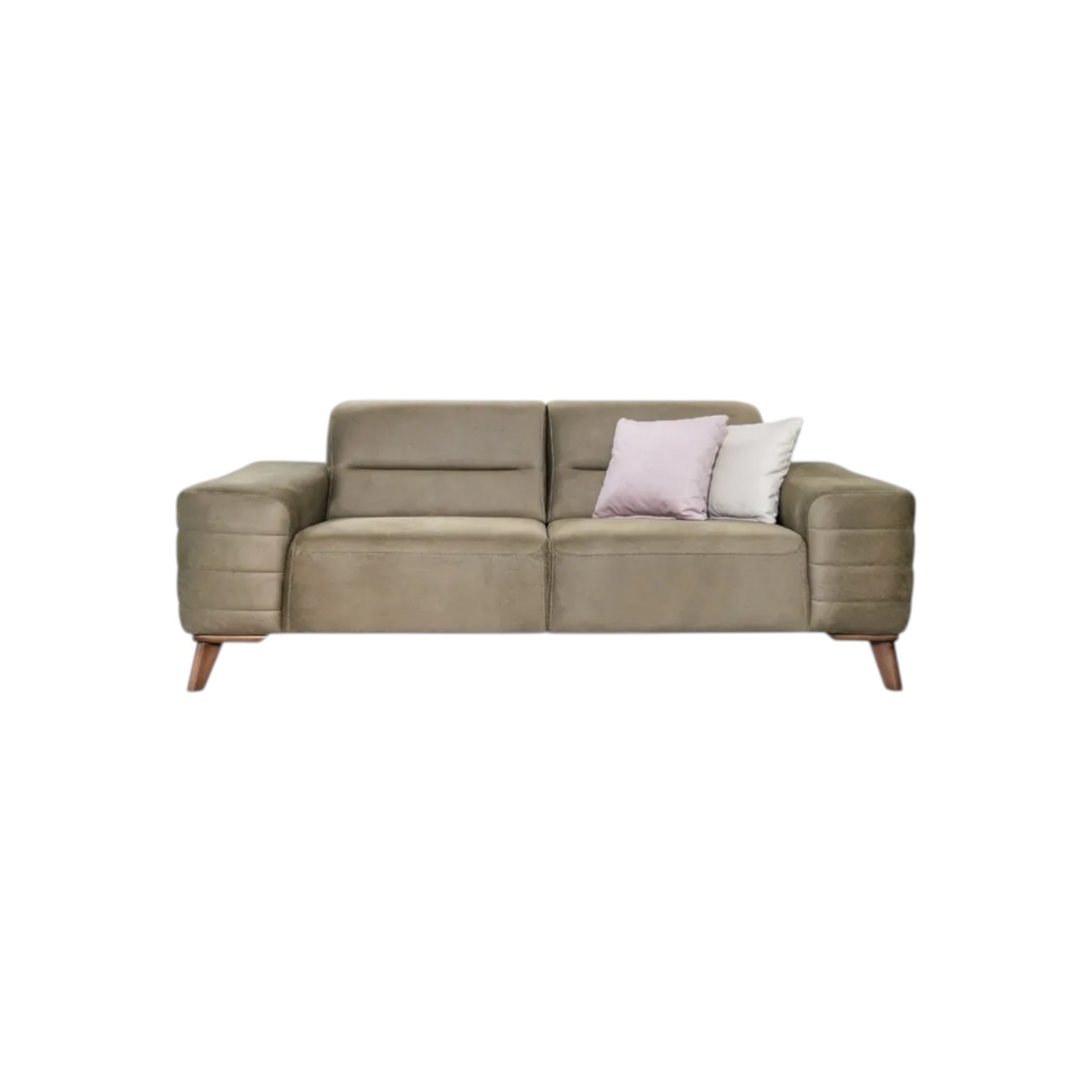 Vrlo udoban, sjedeći dio je izrađen od HR pjene koja se nalazi na elastičnim trakama koje povećavaju osjećaj udobnosti. Drvena konstrukcija daje čvrstoću i izdržljivost, a drvene noge omogućuju odabir boja. Trosjed se ne razvlači.